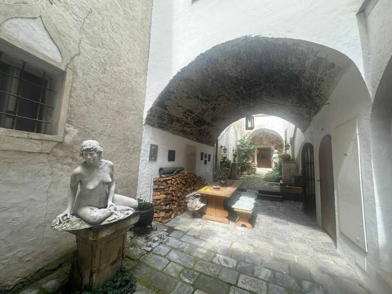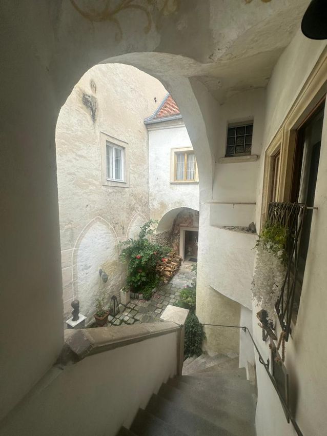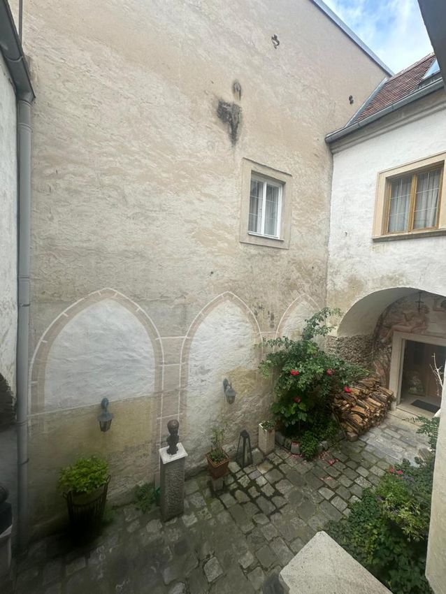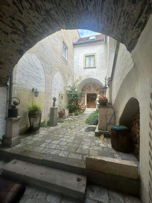 Am hohen Markt in der Kremser Altstadt, befindet sich diese historische Liegenschaft, welche mit Ihrem herrschaftlichen Flair, hohe Gewölberäume verzaubert. Die Liegenschaft teilt sich in 3 Einheiten auf. Im Erdgeschoss befindet sich eine gr. Wohnung (167m2 NFL), welche in der jüngsten Zeit als Atelier und bevor als Wohnung genutzt wurde. Es gibt 2 eigene Eingänge, einen riesigen Weinkeller (70m2), einen Platz im Innenhof (im Eigentum 12m2) welcher zum Sitzen und Grillen einlädt. Diese Einheit kann sofort erworben werden um KP € 449.000,-