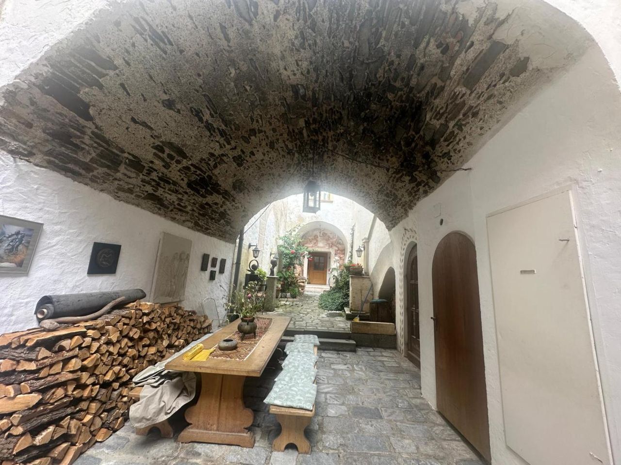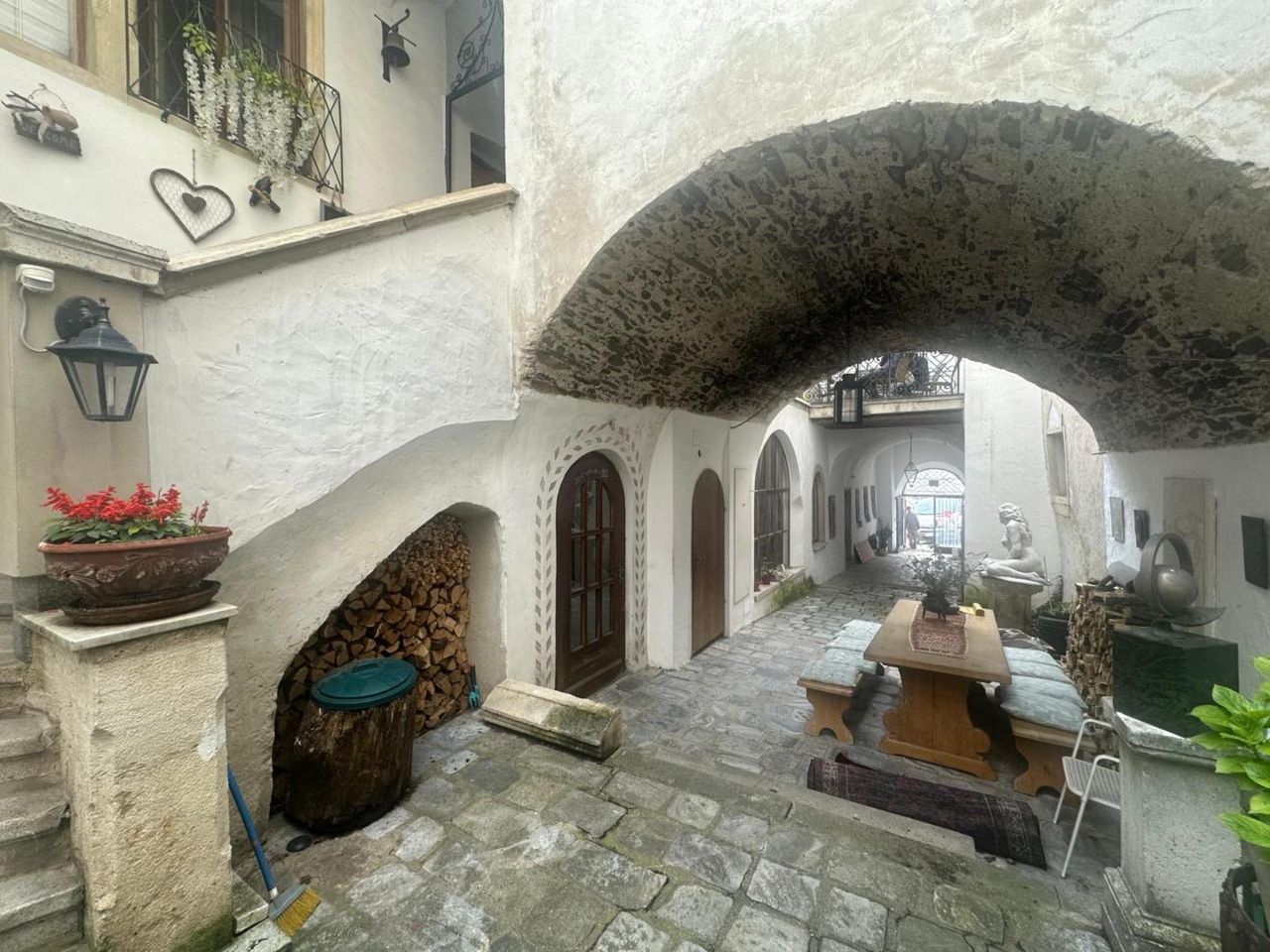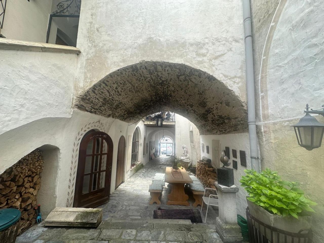 Am hohen Markt in der Kremser Altstadt, befindet sich diese historische Liegenschaft, welche mit Ihrem herrschaftlichen Flair, hohe Gewölberäume verzaubert. Die Liegenschaft teilt sich in 3 Einheiten auf. Im Erdgeschoss befindet sich eine gr. Wohnung (167m2 NFL), welche in der jüngsten Zeit als Atelier und bevor als Wohnung genutzt wurde. Es gibt 2 eigene Eingänge, einen riesigen Weinkeller (70m2), einen Platz im Innenhof (im Eigentum 12m2) welcher zum Sitzen und Grillen einlädt. Diese Einheit kann sofort erworben werden um KP € 449.000,-