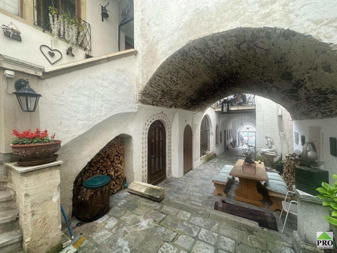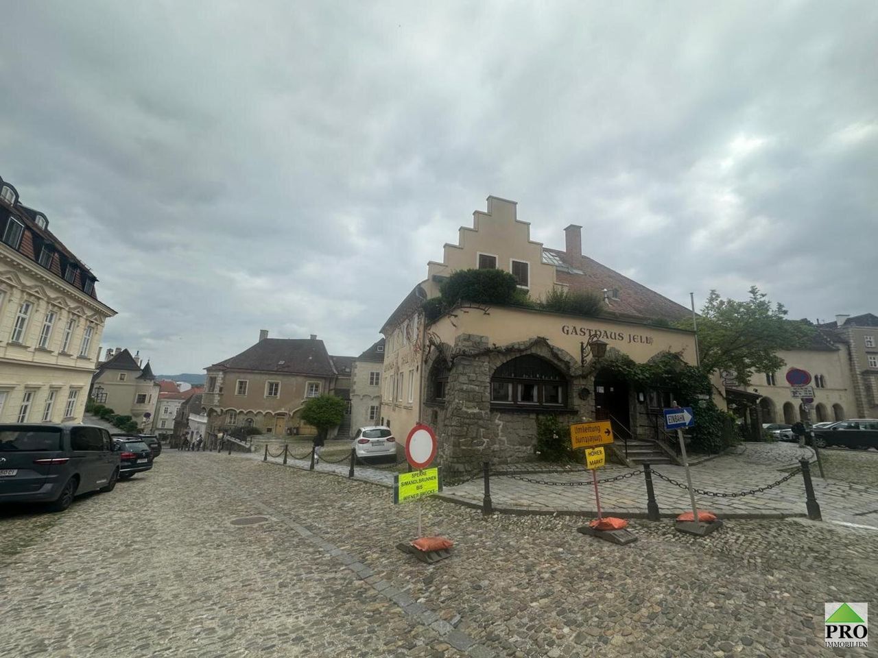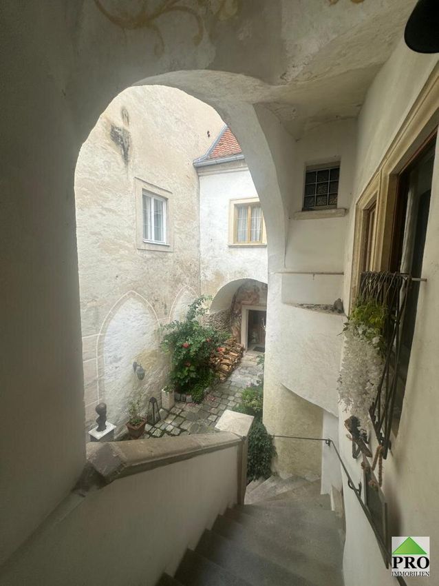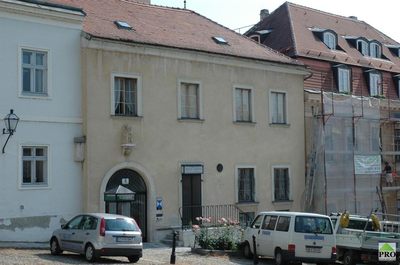 Am hohen Markt in der Kremser Altstadt, befindet sich diese historische Liegenschaft, welche mit Ihrem herrschaftlichen Flair, hohe Gewölberäume verzaubert. Die Liegenschaft teilt sich in 3 Einheiten auf. Im Erdgeschoss befindet sich eine gr. Wohnung (167m2 NFL), welche in der jüngsten Zeit als Atelier und bevor als Wohnung genutzt wurde. Es gibt 2 eigene Eingänge, einen riesigen Weinkeller (70m2), einen Platz im Innenhof (im Eigentum 12m2) welcher zum Sitzen und Grillen einlädt. Diese Einheit kann sofort erworben werden um KP € 449.000,- vereinbaren Sie noch heute einen Besichtigungstermin unter: j.schuster@pro-immobilien.at oder 0664/2563804 Herr Schuster oder Herr Frei unter 0676/6312910