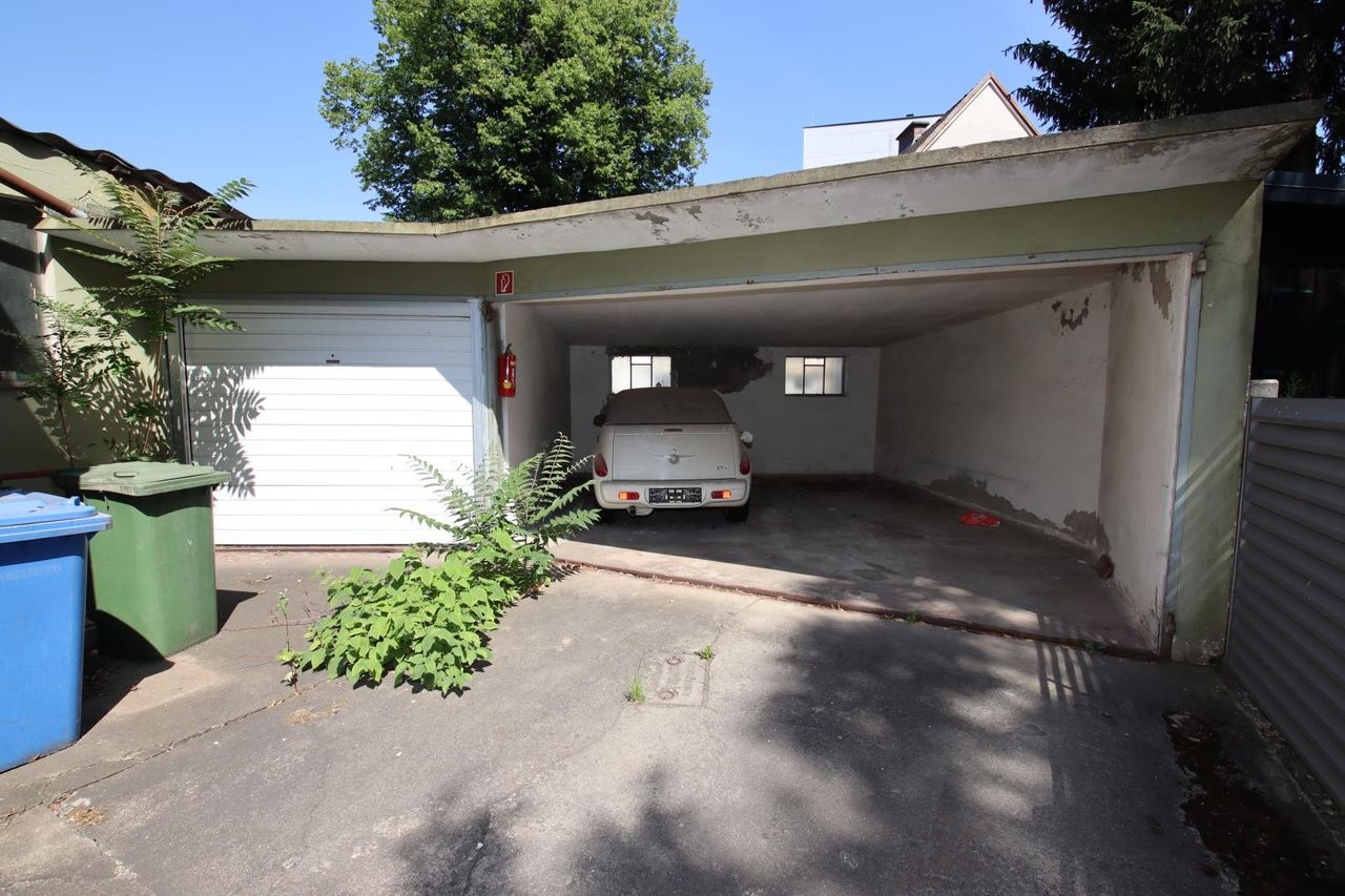 Von außen zugänglich sind noch weitere kleine Lagerräume sowie das Carport und die Garage.
