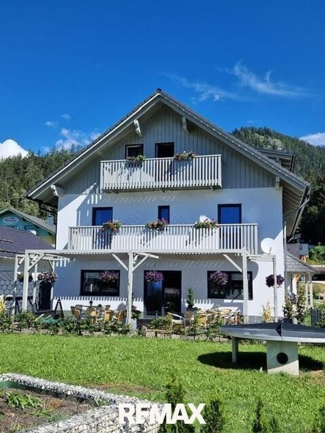 Von RE/MAX Nature zum Kauf angeboten wird ein tolles, großzügiges Apartmenthaus (Frühstückspension) mit ca. 400m² Wohnfläche aufgeteilt auf 3 Etagen. Es befindet sich in bester Sonnenlage und bietet einen absolut aussergewöhnlichen Blick auf den imposanten Hausberg der Region, den Grimming. Die Lage könnte wohl nicht besser sein, ruhig und doch zentral nahe der Tauplitzalm Alpenstraße, in einer kleinen Siedlung auf einem schönen, ebenen Grundstück. Nutzungsmöglichkeiten für dieses besondere Haus gibt es viele wie zum Beispiel: - als Domizil für die Großfamilie - für mehrere Familien mit unterschiedlichen Wohnbereichen - für teilweise touristische Nutzung - als Pension oder Apartmenthaus Ziemlich alles...