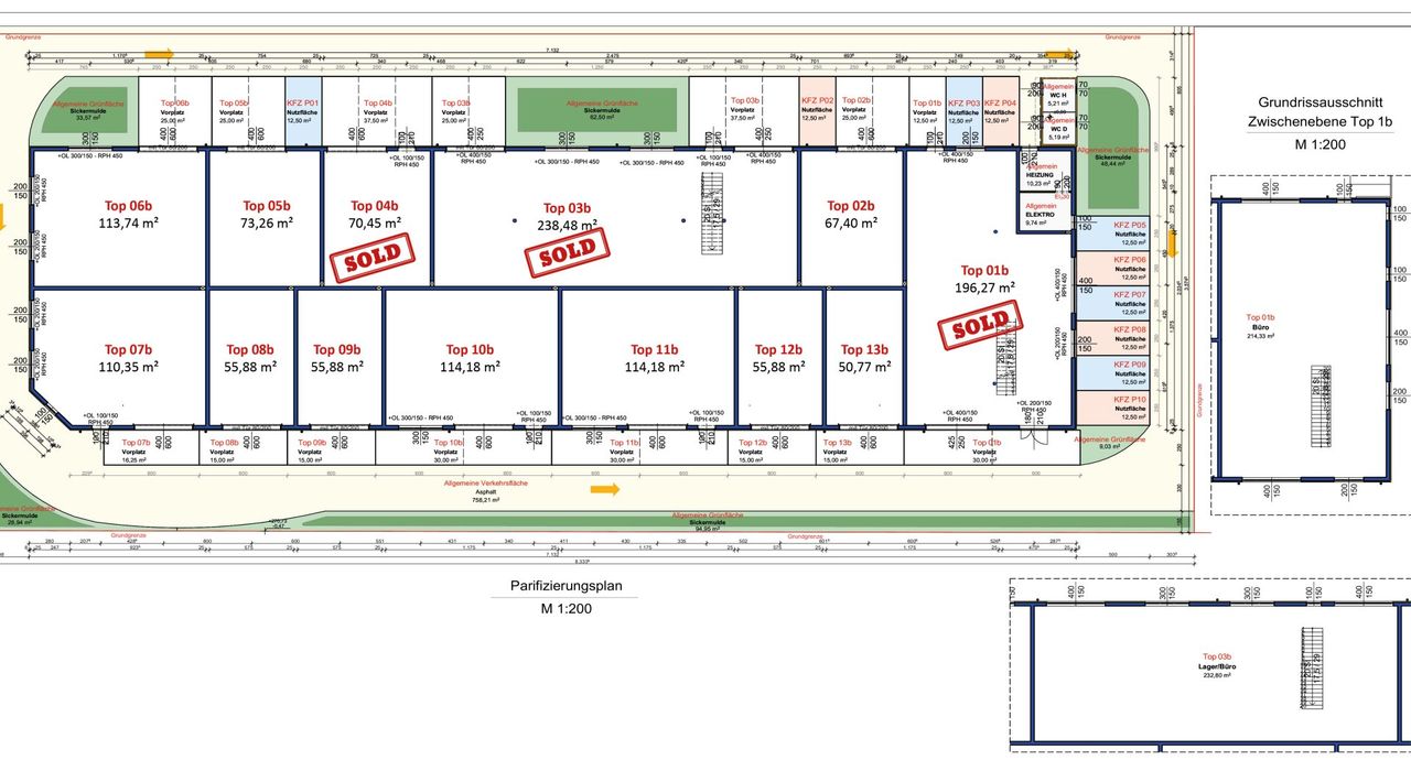 Betriebs-/Produktions- oder Lagerhallen mit Flächen von 47 - 238 m² im Grünwallpark Ansfelden zu verkaufen