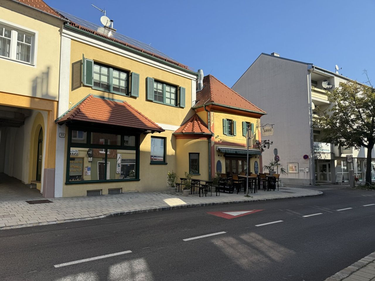 Die Liegenschaft bietet eine ideale Kombination aus Gastronomiefläche, Büroeinheiten, Wohnung und Parkmöglichkeiten.