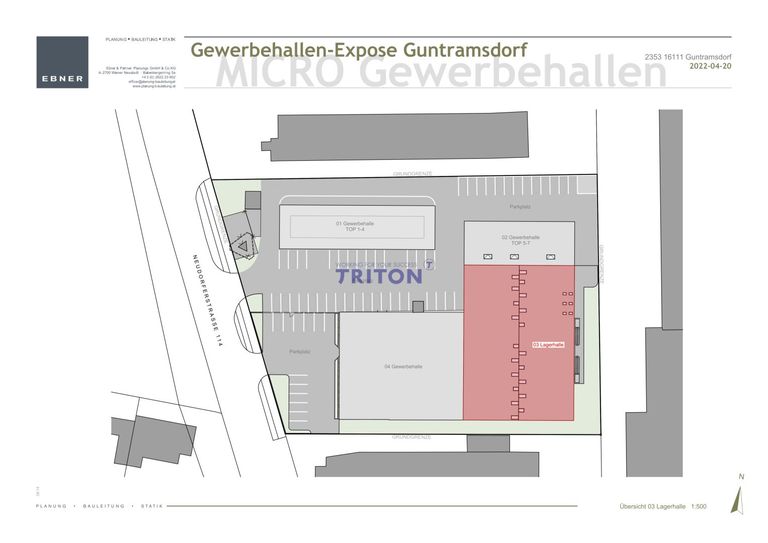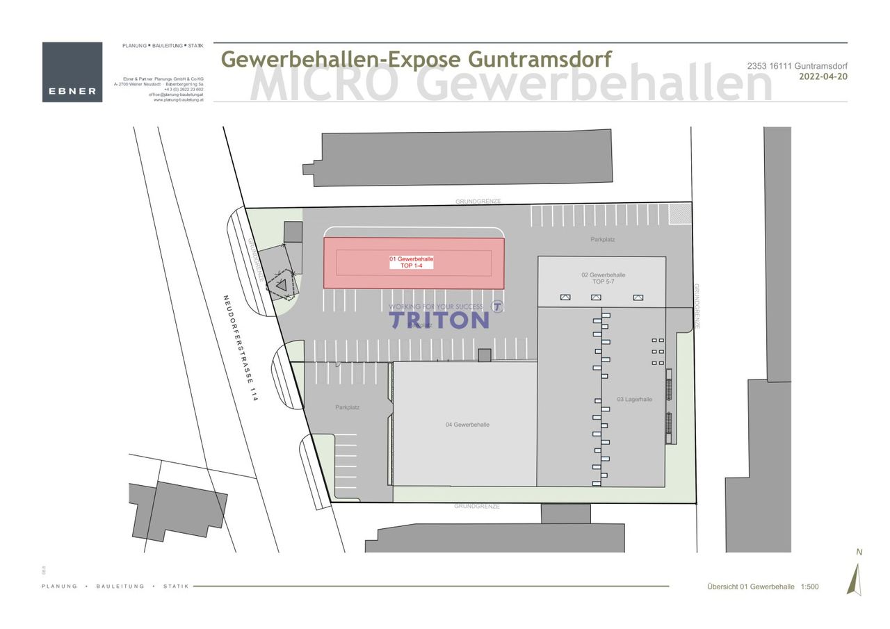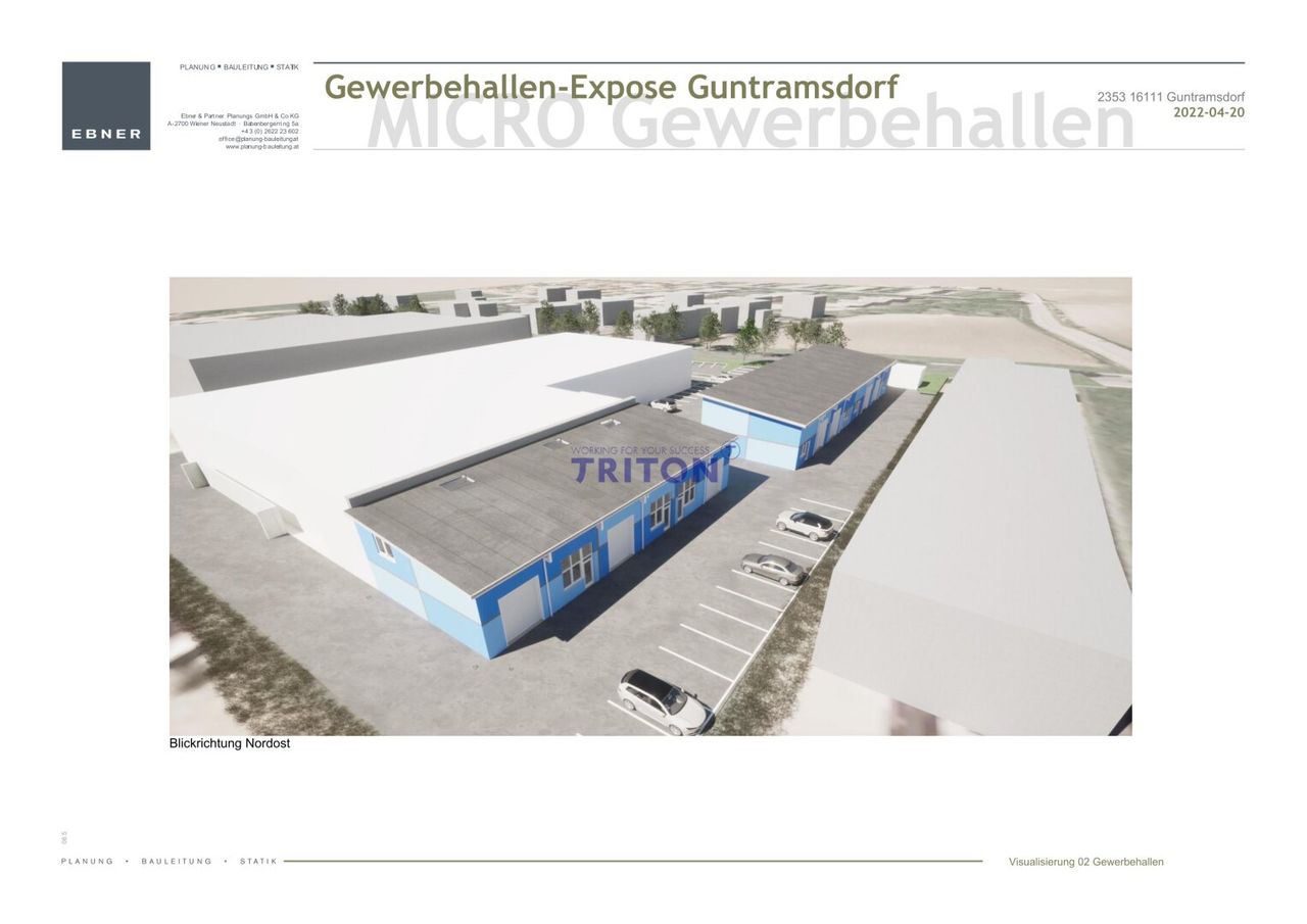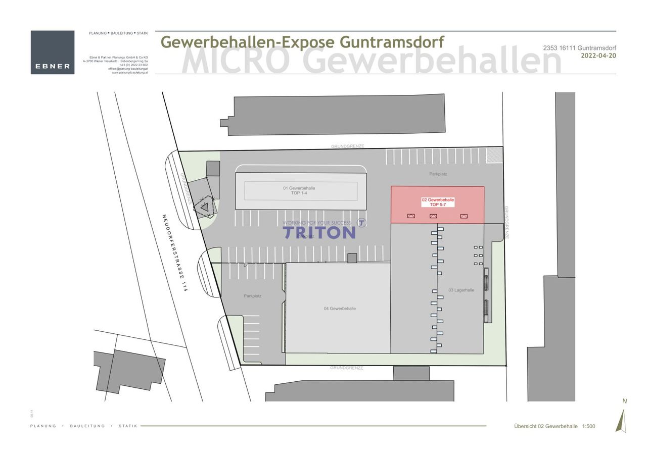 Die Immobilie befindet sich in einem etablierten Gewerbegebiet von Guntramsdorf, umgeben von erfolgreichen Unternehmen aus Handel, Logistik und Produktion. Die unmittelbare Nähe zur A2 Südautobahn sowie die Anbindung an öffentliche Verkehrsmittel wie die Badner Bahn und Buslinien gewährleisten sowohl regionale als auch überregionale Erreichbarkeit.