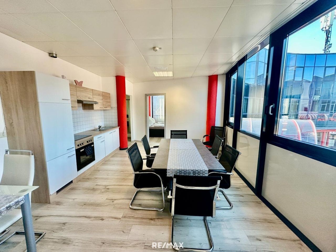 Im Wirtschaftszentrum von Spielberg, einer stark frequentierten Gewerbelage mit bester Infrastruktur, steht eine großzügige Gewerbefläche im ersten Obergeschoss zum Verkauf. Die Einheit überzeugt durch eine durchdachte Raumaufteilung, flexible Nutzungsmöglichkeiten und ihre ausgezeichnete Lage – nur wenige Minuten vom Red Bull Ring entfernt. Die Gesamtfläche gliedert sich in fünf separate Zimmer, zwei Badezimmer, eine ausgestattete Küche mit Essbereich sowie einen großen Empfangs- bzw. Aufenthaltsraum. Die Räume sind hell, freundlich und bieten vielseitige Gestaltungsmöglichkeiten – ideal für Büro, Kanzlei, Ordination oder Praxis. Aktuell wird die Immobilie als Kurzzeitunterkunft genutzt. Die fünf Zimmer sind als Doppelzimmer eingerichtet, der zentrale Aufenthaltsbereich dient als Gemeinschaftsraum,...