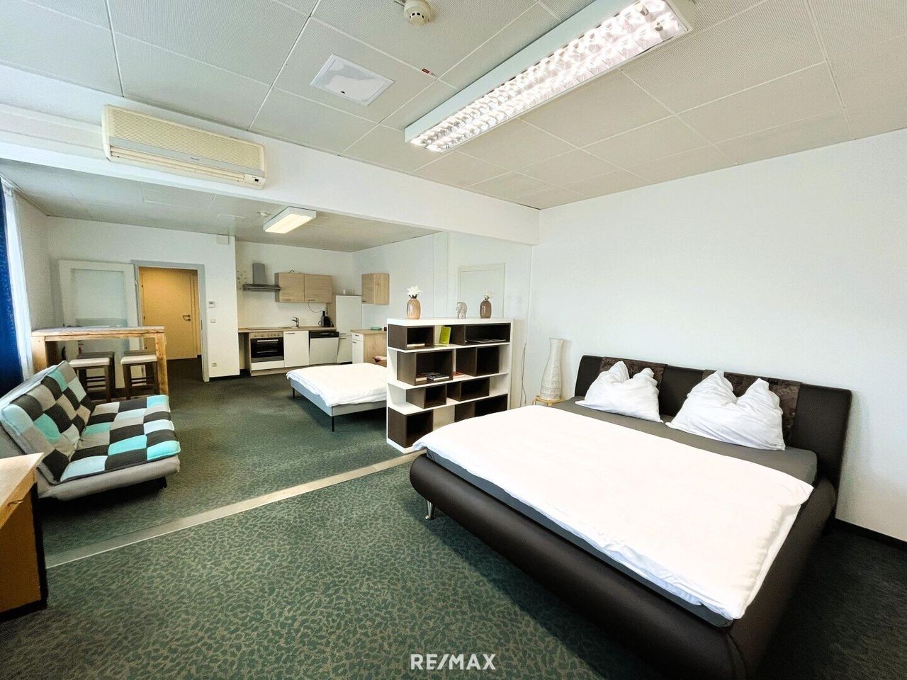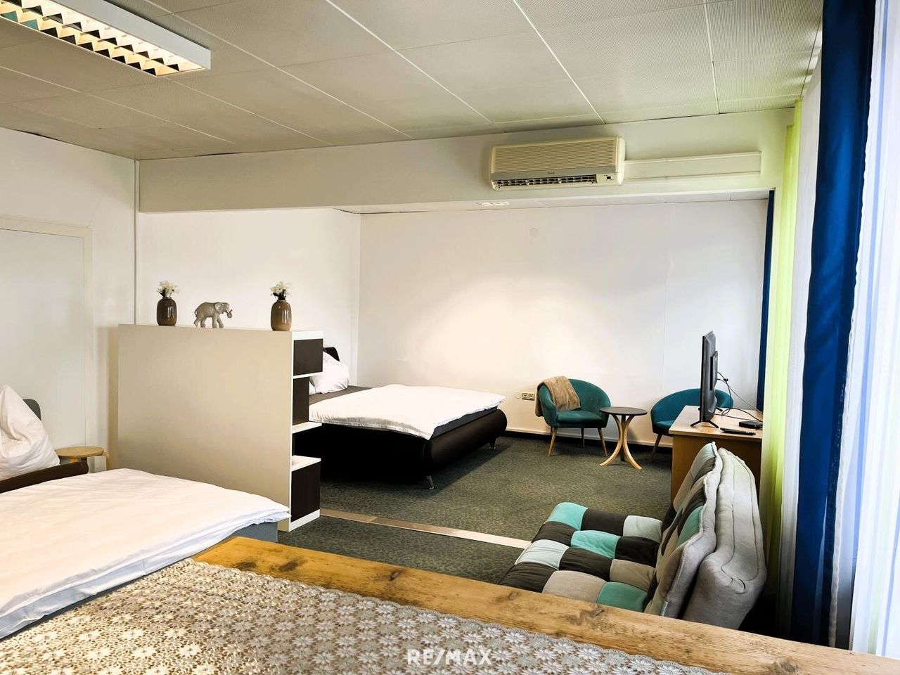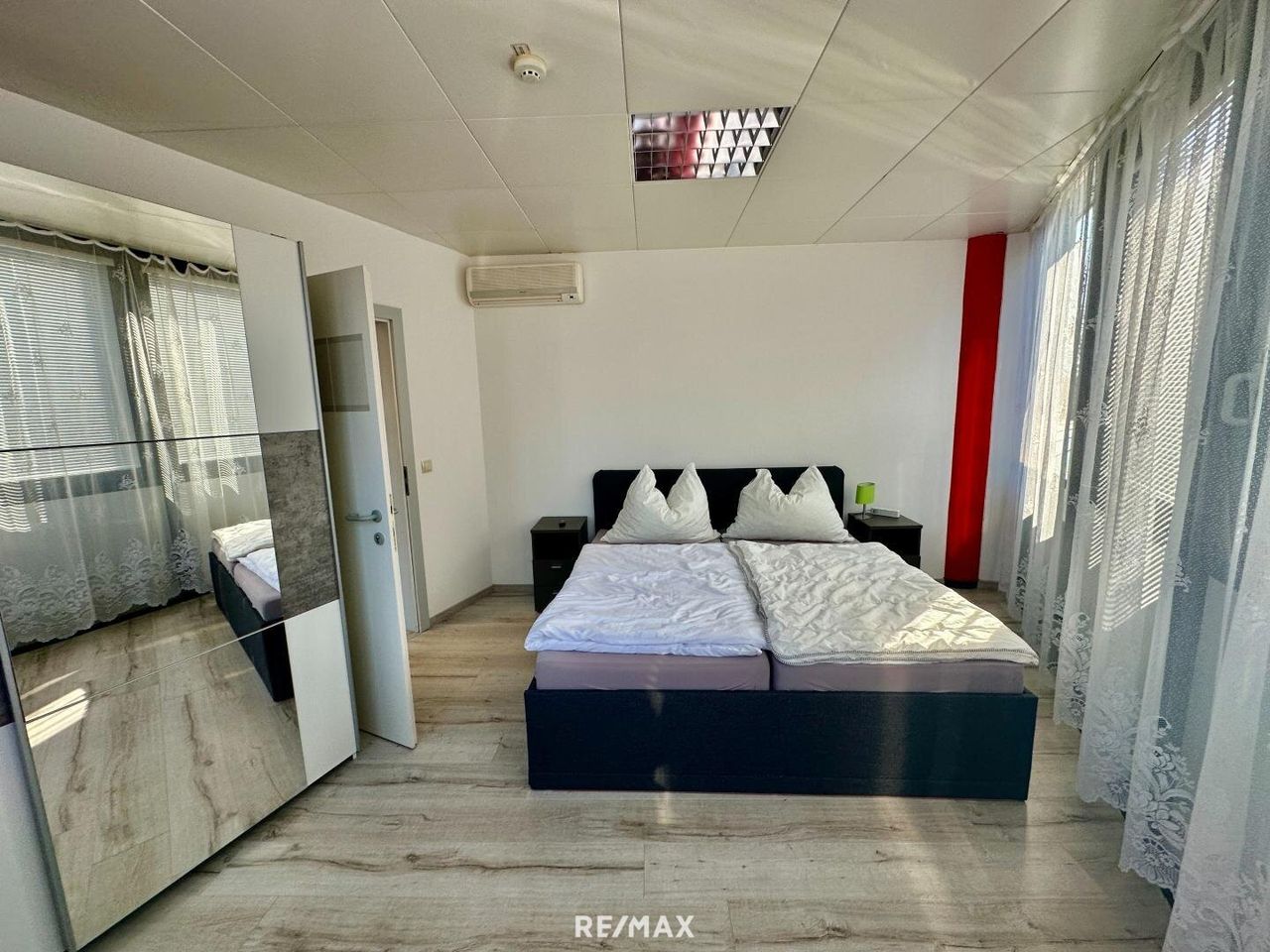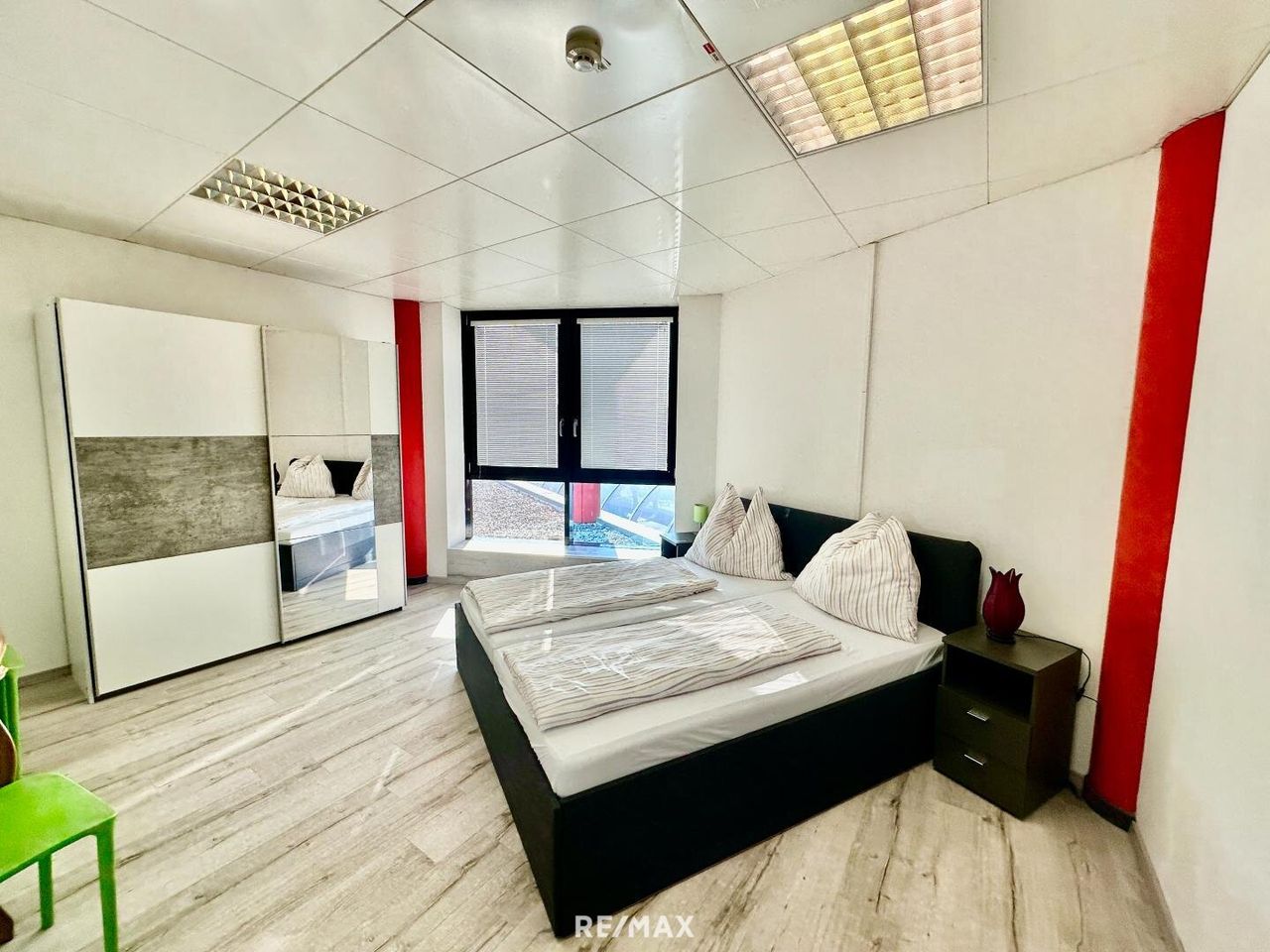 - 1 großzügiges Apartment mit ca. 184 m², bestehend aus 5 Schlafzimmern, 2 Badezimmern sowie einem offenen Wohn- und Aufenthaltsbereich. Dieses eignet sich hervorragend für größere Gruppen, Firmenunterkünfte oder kann zu hochwertigen Büroflächen (z. B. Kanzlei) umgewandelt werden.