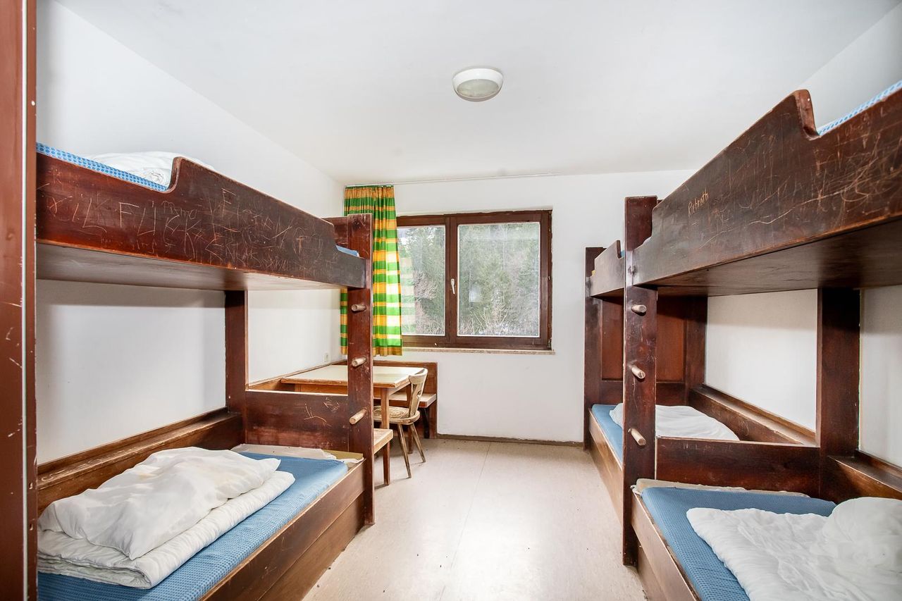 Das ehemalige Jugendgästehaus, welches im Jahre 1981 baubewilligt und in massiver Bauweise errichtet wurde, verfügt über Keller-, Erd-, 1. und 2. Obergeschoss sowie ein nicht ausgebautes Dachgeschoss und bietet folgende Raumaufteilung.