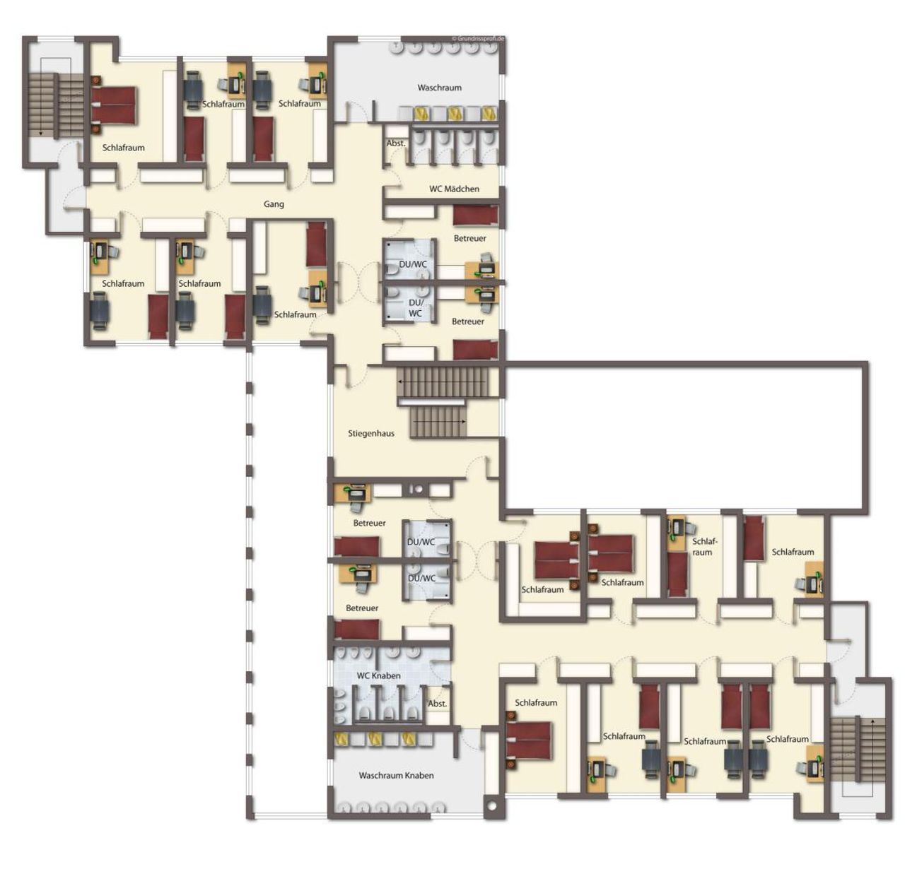 - 1. + 2. OG als schematische Darstellung möbliert