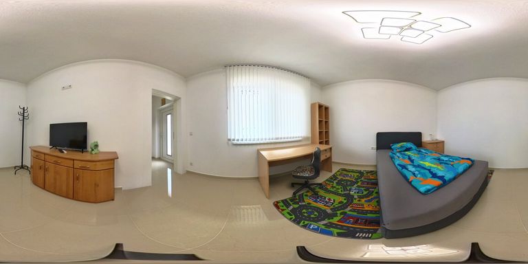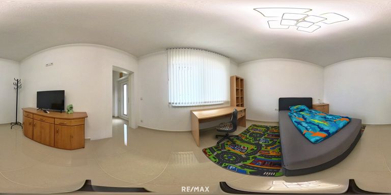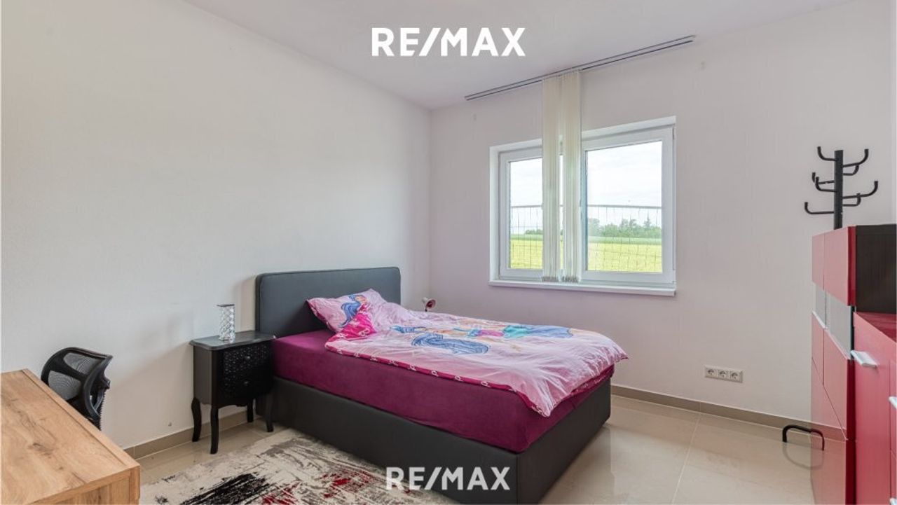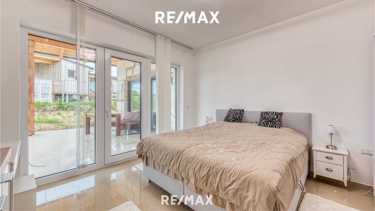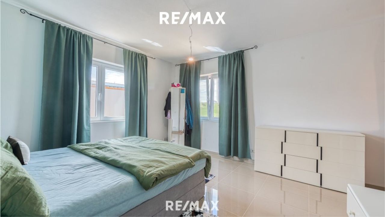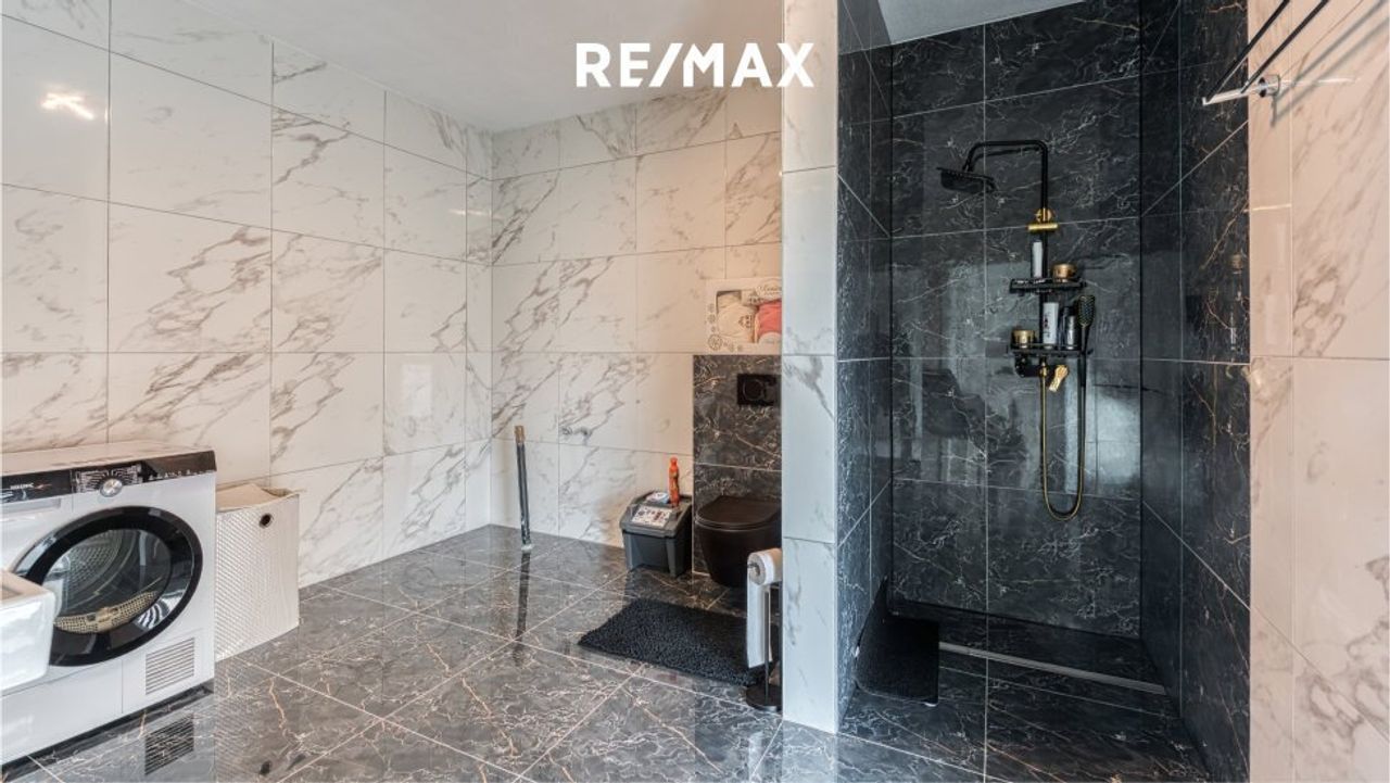 Ein Elternschlafzimmer mit Schrankraum und eigenem Badezimmer mit WC. Zwei weitere Schlafzimmer und eine extra Dusche mit WC stehen für die Familie und die Gäste zur Verfügung. Ein weiteres Zimmer ist als Büro benutzbar.