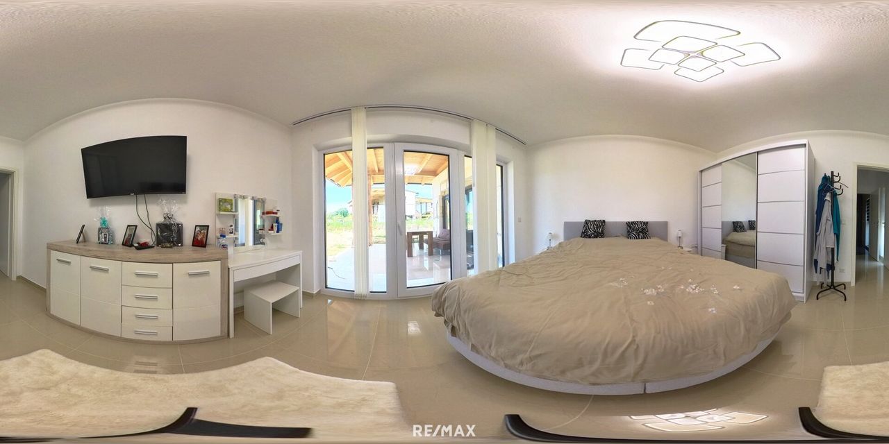 Ein Elternschlafzimmer mit Schrankraum und eigenem Badezimmer mit WC. Zwei weitere Schlafzimmer und eine extra Dusche mit WC stehen für die Familie und die Gäste zur Verfügung. Ein...