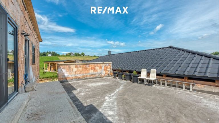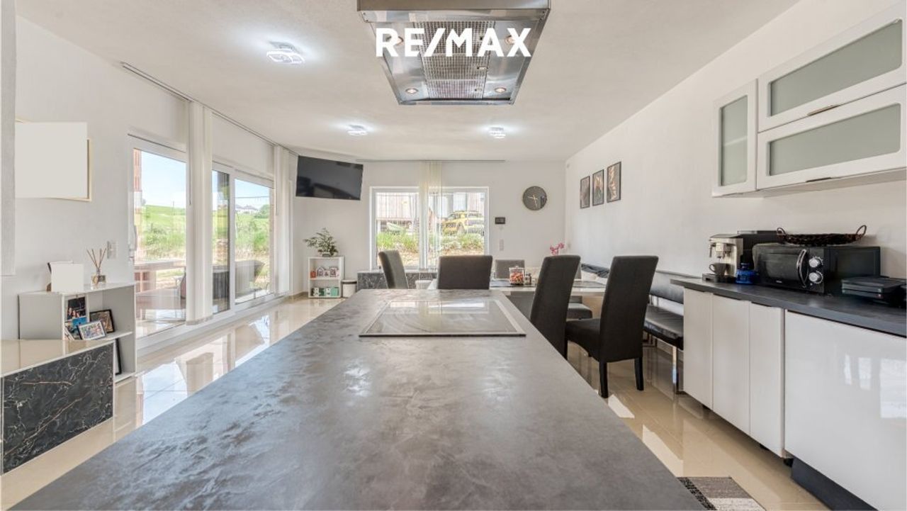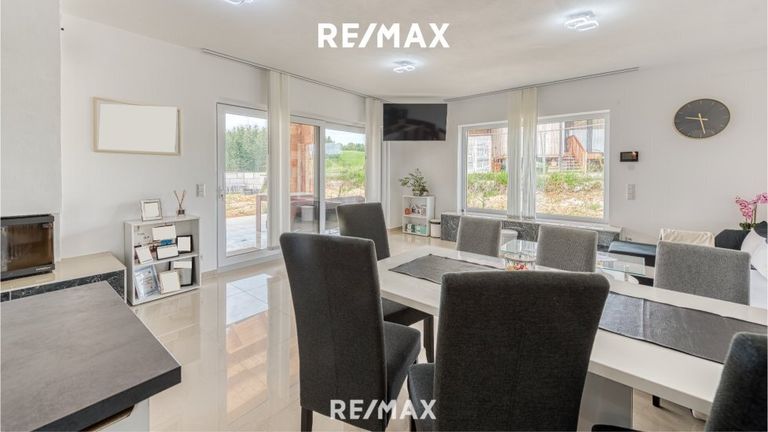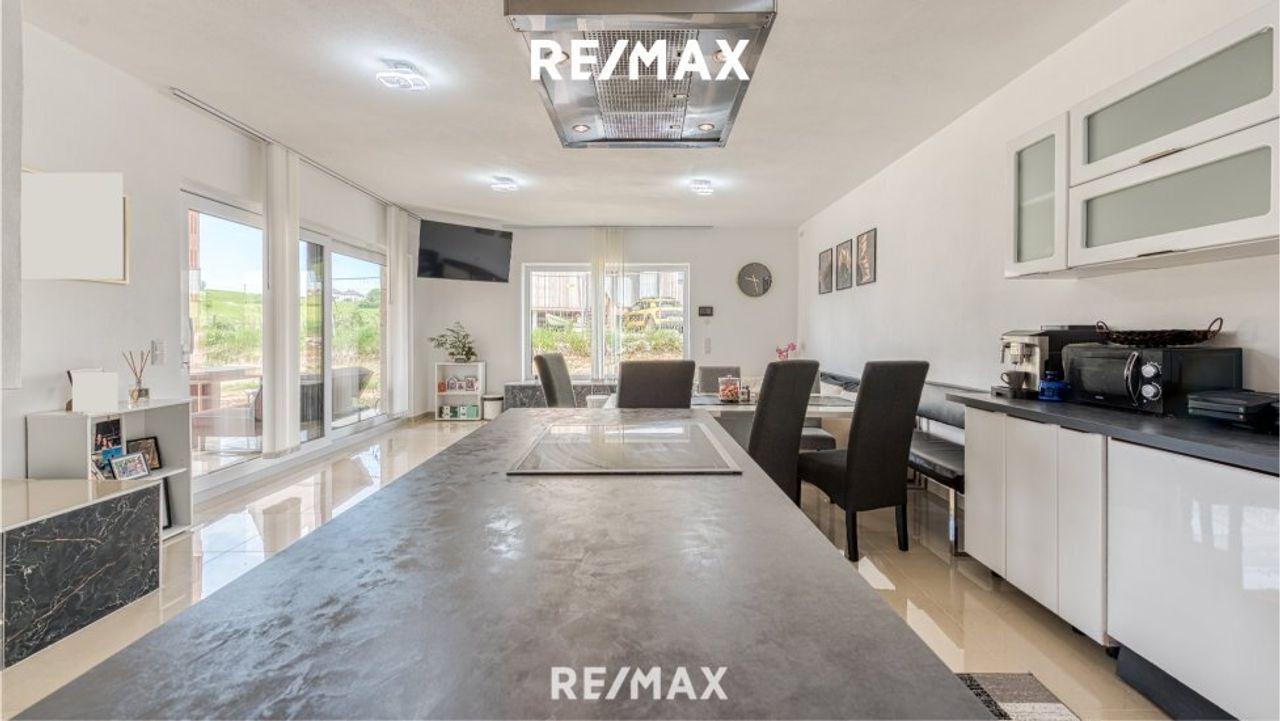 Moderner Bungalow mit Doppelgarage, Lagerhalle und zweiter Wohnung.