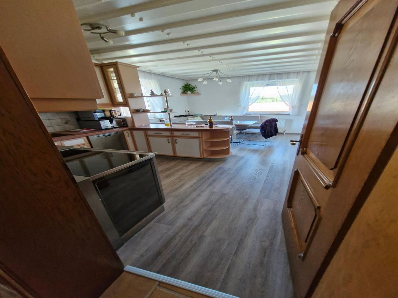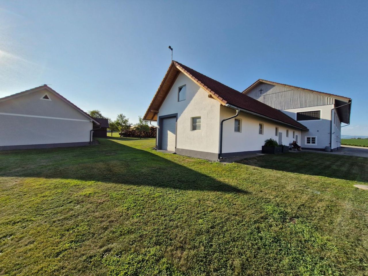 Im niedrigen Anbau am Stall 7 x 20 m befindet sich eine große Garage mit Rolltor und ein Aufenthaltsraum, im Dachraum ist zusätzliches Lager.