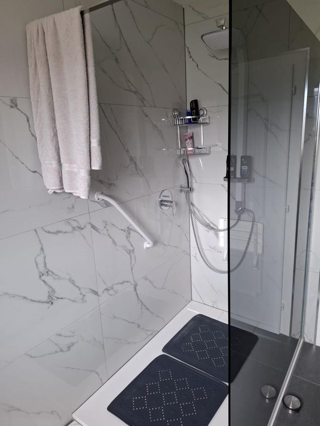 Das Obergeschoss hat 5 Zimmer mit Dusche und ein Bad.