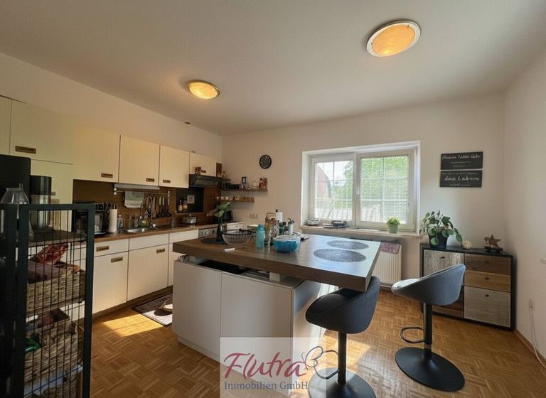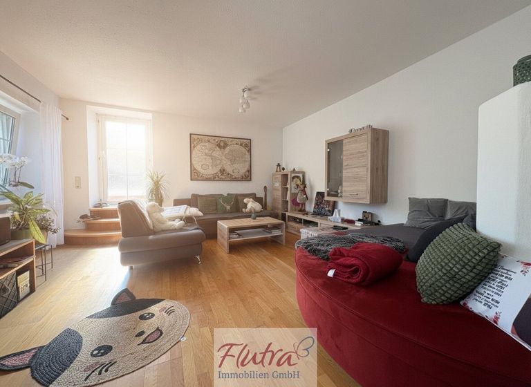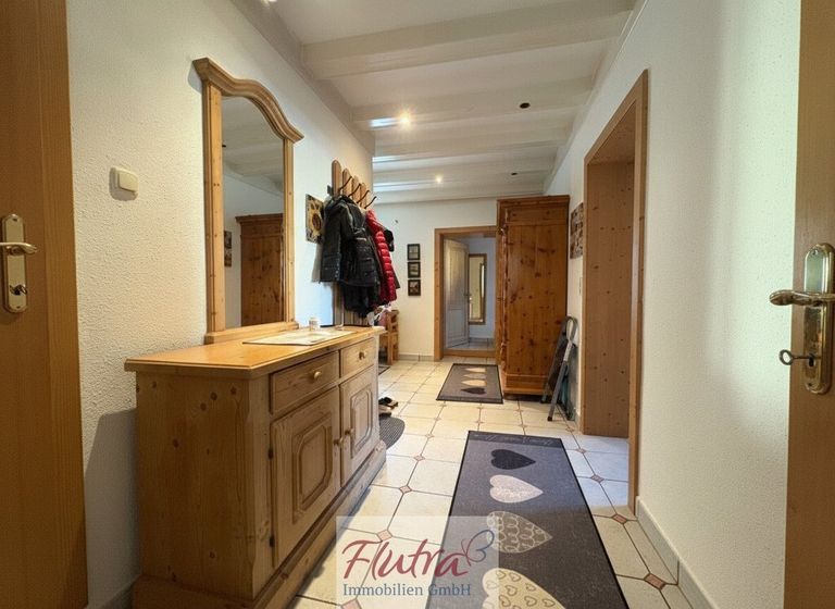 Eine Wohnung mit 5 Zimmern liegt im Obergeschoß des Gebäudes und umfasst ca. 115 m² Wohnfläche. Zusätzlich gehört eine Terrasse mit ca. 61 m² zu dieser Wohnung.