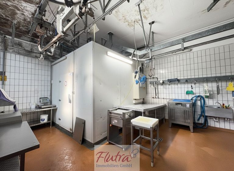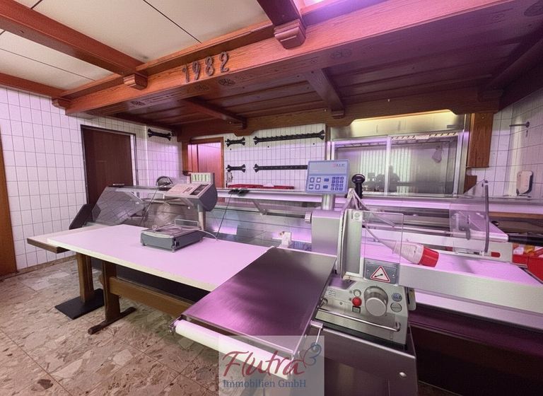 Die bis vor kurzem genutzten Flächen wie Verkaufsraum, Büro, Küche, Kühlräume, Verarbeitungsräume und Doppelgarage umfasst ca. 290 m² sowie zusätzliche Außenflächen von ca. 130 m². Diese Flächen wurden als Fleischerei genutzt und können individuell adaptiert werden. Da die Liegenschaft im Kerngebiet liegt, müssen andere betriebliche Anlagen genehmigt werden.