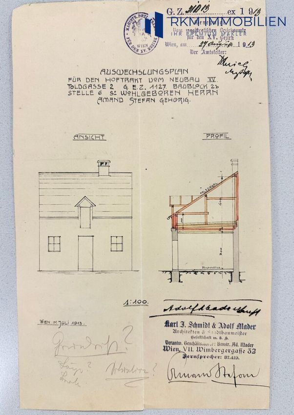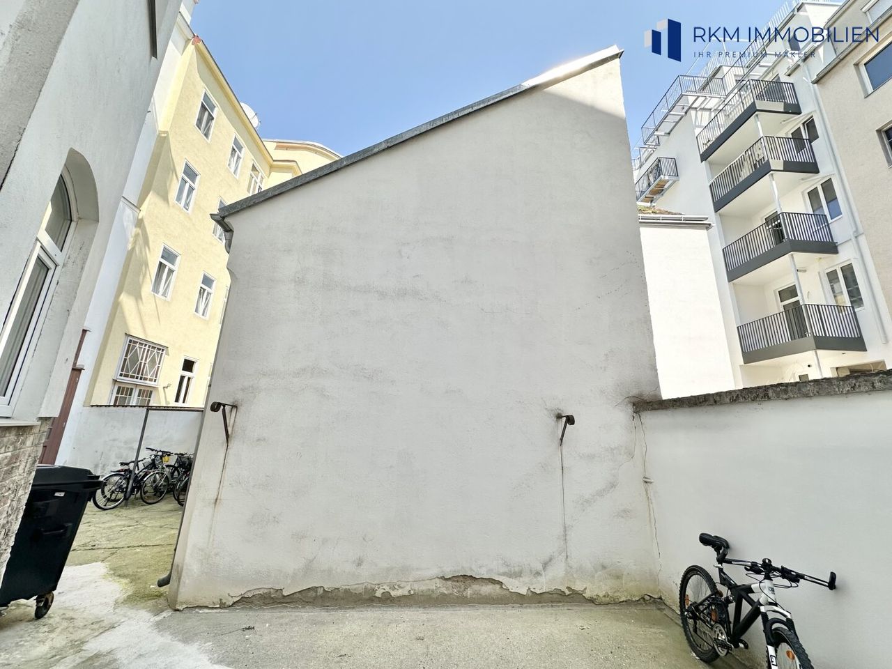 Zum Verkauf steht ein freistehendes Lagergebäude im Innenhof eines Zinshauses im 15. Wiener Gemeindebezirk. Das Gebäude verfügt über zwei Ebenen, wobei das zweite Geschoss ein ausgebauter Dachboden (Mansarde) ist. Die Fläche jeder Ebene beträgt ca. 26 m². Der Zugang zur Mansarde erfolgt über eine außen angebrachte Leiter.