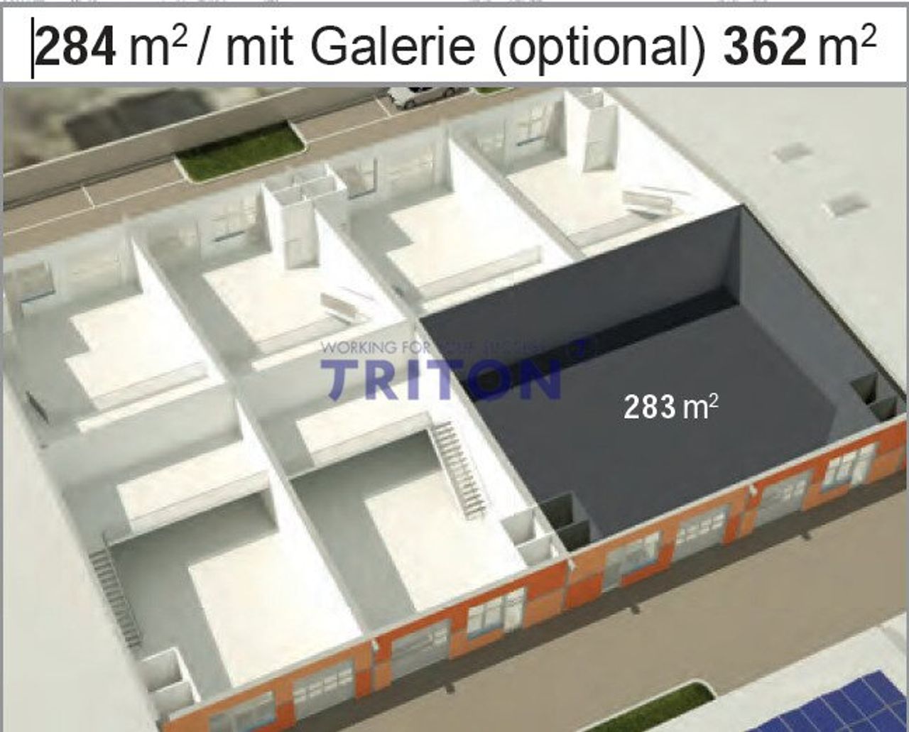 Die einzelnen Einheiten von 144 m², mit Galerie 183 m² lassen sich nach Wunsch zu maximal 8 Einheiten zusammenfassen, wodurch eine Gesamtobjektgröße von bis zu 1.134 m² (mit Galerie 1.290 m²) möglich ist.