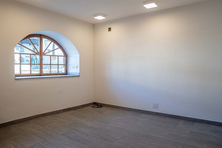 Der Raum ist mit verputzten Wänden und einem verfliesten Boden ausgestattet. Massives Mauerwerk und moderne Kastenfenster im Stil des 18. Jahrhunderts verbinden historische Substanz mit zeitgemäßer Nutzung.