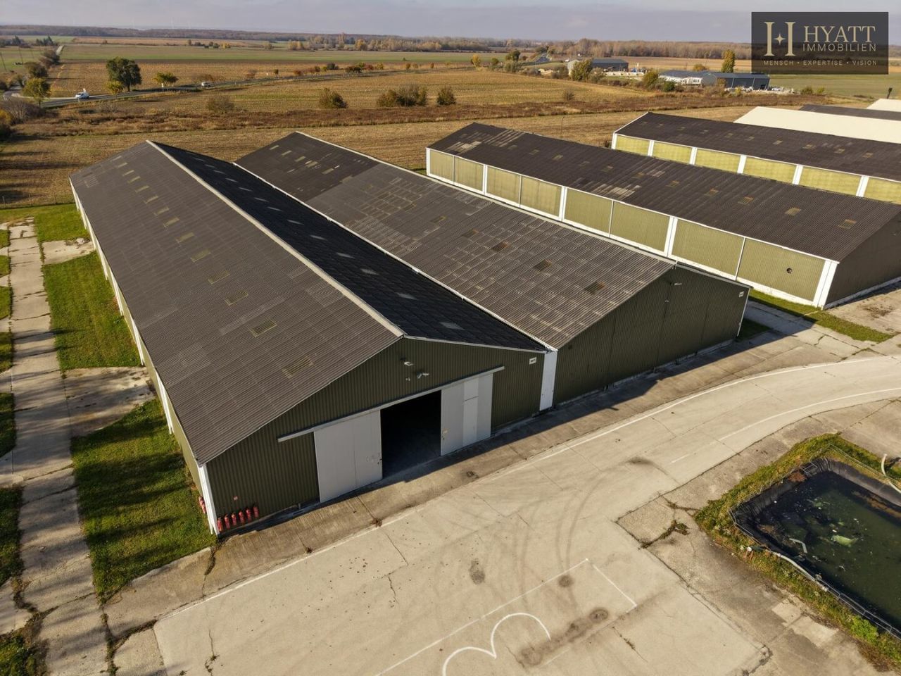 • Teilweise bereits ausgestattete Hallen (z. B. Regalsysteme)