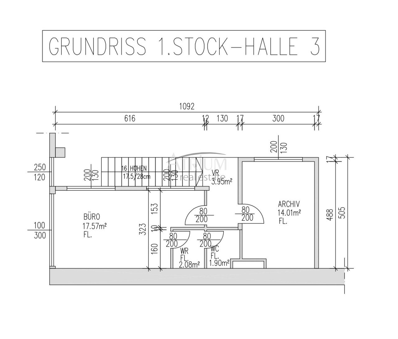 Des Weiteren verfügt das Objekt über eine Deckenhöhe von ca. 7m, LED - Deckenbeleuchtung, einen Aufenthaltsraum mit Küchenanschluss im Erdgeschoss und zwei Büros mit Sanitäreinrichtung im Obergeschoss. Die Stromabrechnung läuft über einen eigenen Zähler und wird laut Eigenverbrauch abgerechnet. Zahlreiche Firmen-/ Kundenparkplätze und individuelle Erweiterungsmöglichkeiten stehen auf Wunsch am Areal ebenfalls zur Verfügung.