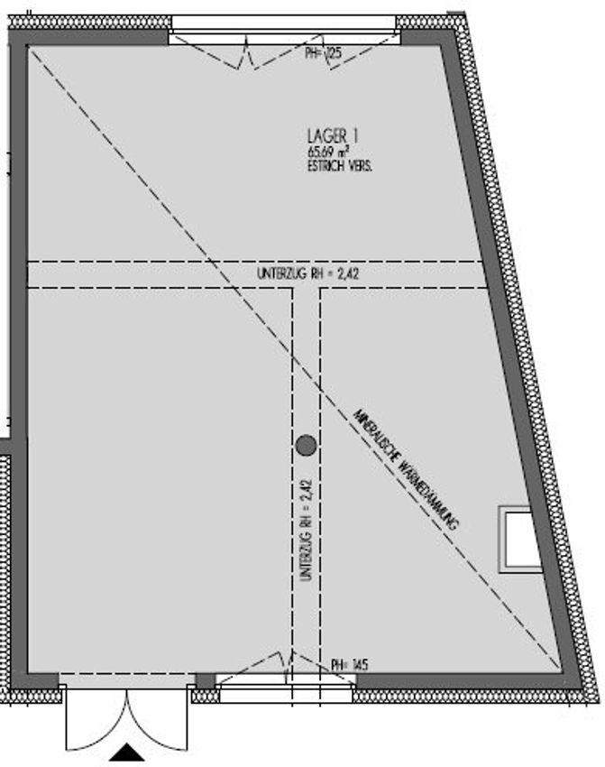 Die Fläche ist nicht beheizt und eignet sich daher besonders für Lagerzwecke ohne temperaturempfindliche Güter.