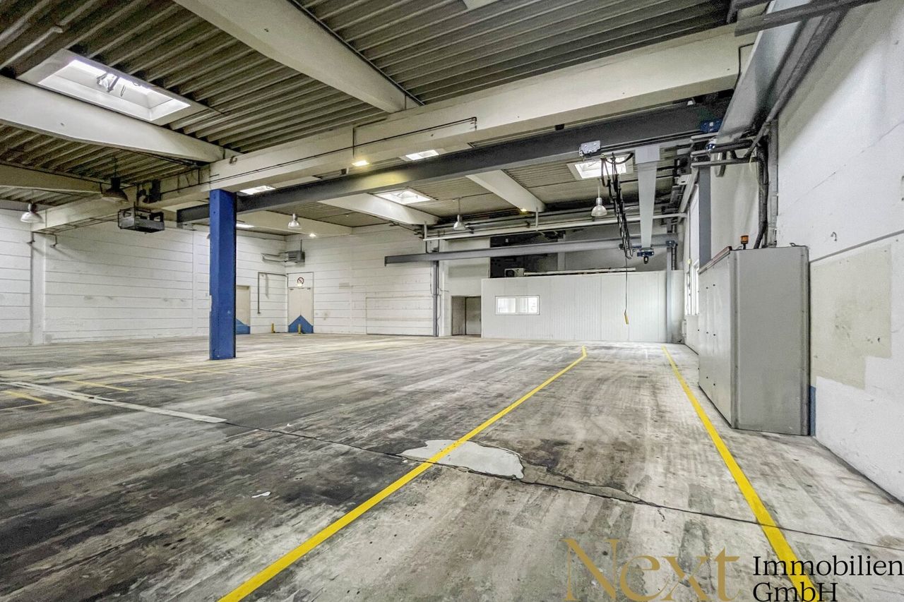 Dieses großzügige und beheizte Gewerbeobjekt, umfasst eine Gesamtfläche von ca. 3.441m². Büros sind nach Wunsch optional anmietbar.