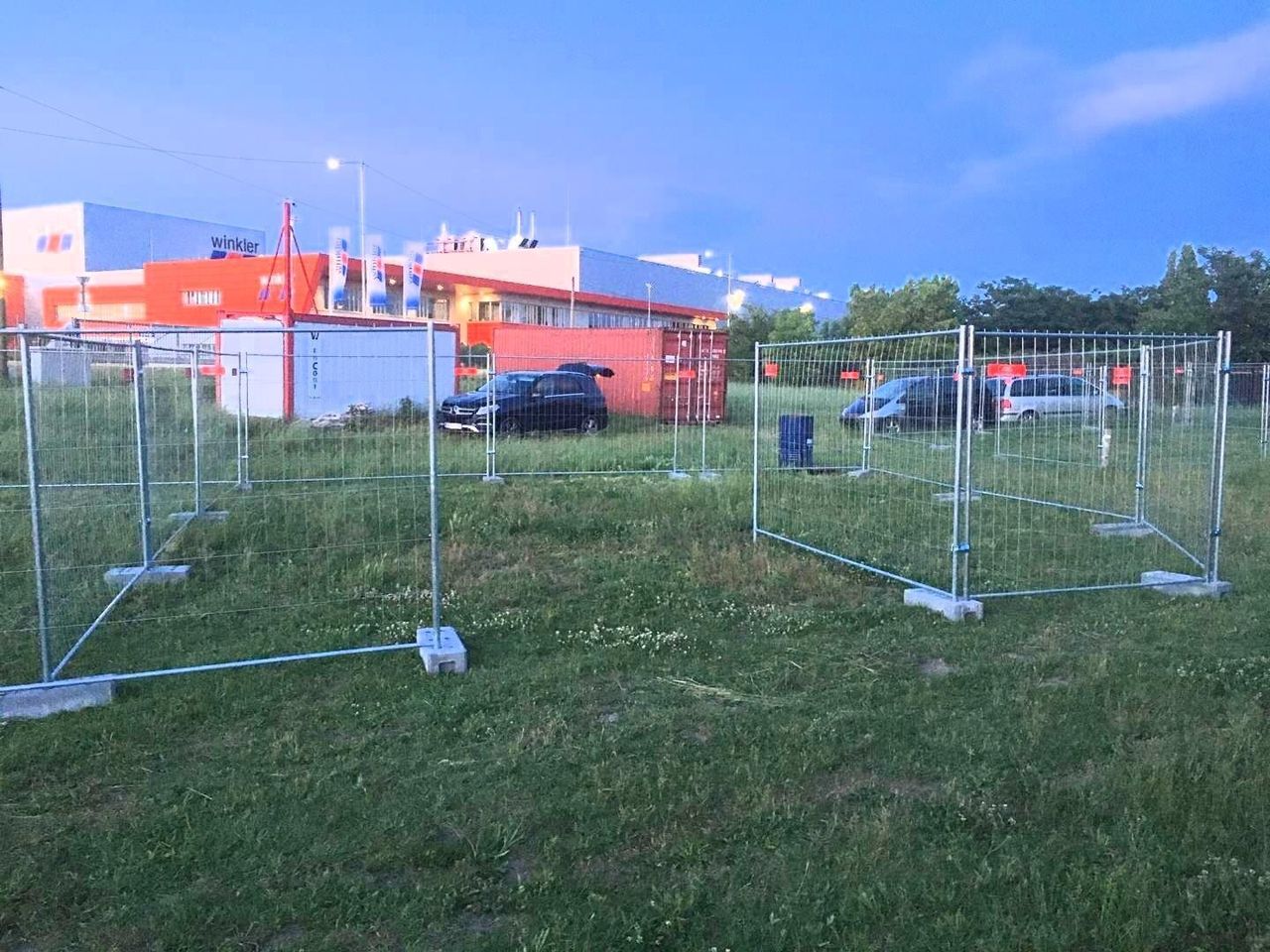 Die angemietete Fläche kann eingezaunt und versperrt werden, Platz für etwa 8-9 KFZ.