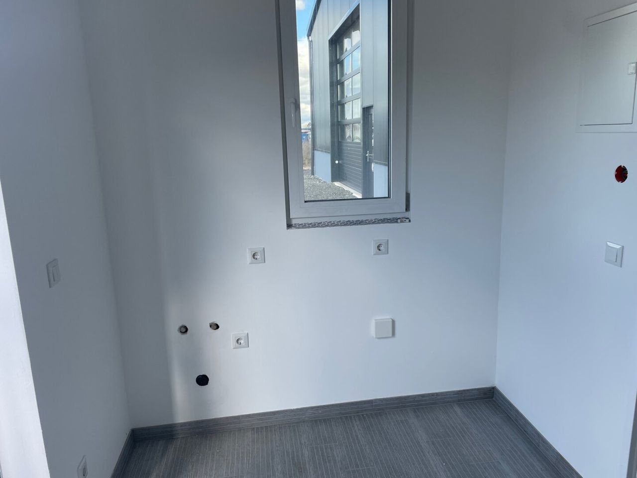 Sie verfügt über 7 Starkstromanschlüsse, Deckenstrahler, und Heizung. (Quelle: Luftwärmepumpe)