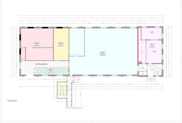 - Lager 1 + Büro = 395 m² (305 m² + 90 m²)