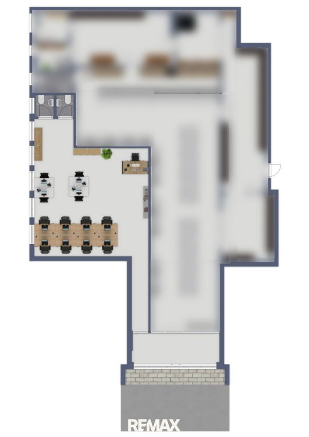 Direkt nebenan befindet sich eine weitere Geschäftsfläche mit rund 380 m², die derzeit lediglich durch eine Rigipswand von der Hauptfläche getrennt ist. Sie können entweder eine der Flächen nutzen oder das Ganze wieder zu einer großen Einheit verbinden. Ein moderner, gemeinsamer Eingangsbereich ist bereits vorhanden und sorgt für einen einladenden ersten Eindruck.