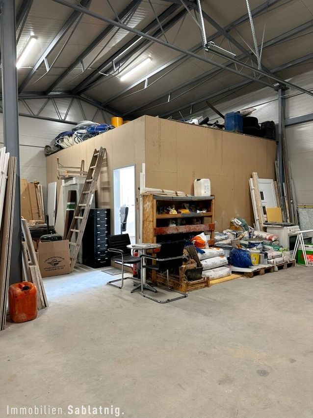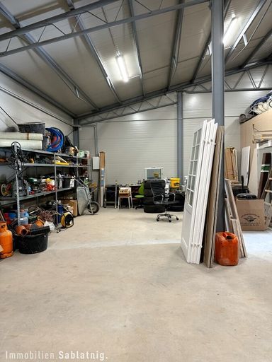 • Lagerhalle: frei befahrbar mit großzügigem Rolltor (ca. 3,5 m × 3,5 m) – ideal für Warenumschlag, Logistik und Lagerungszwecke.