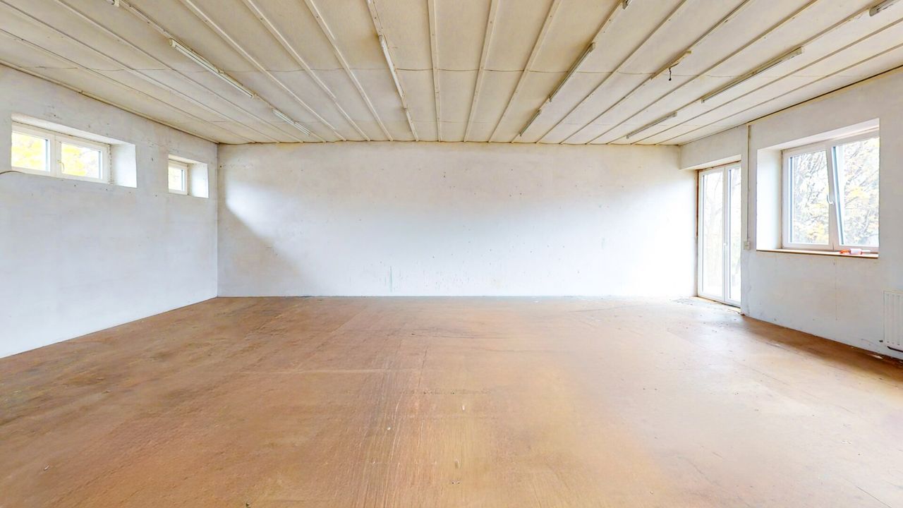 Obergeschoss (ca. 151,4 m²): Helle Zusatzflächen Über eine Treppe im Hauptlager erreichen Sie das Obergeschoss. Hier befinden sich zwei weitere, großzügige Räume mit vielen Fenstern. Diese eignen sich hervorragend als helles Zusatzlager, Kommissionierstation oder Archiv.