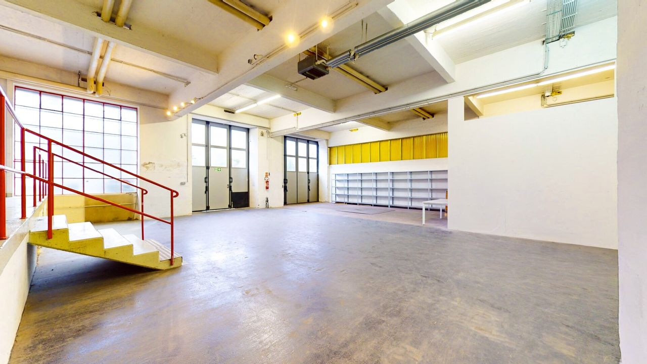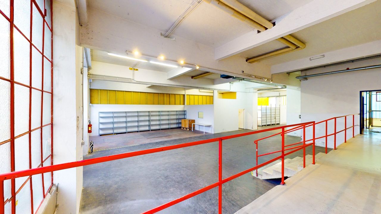- Die hintere Halle ist teilweise durch Trockenbauwände und Regale in separate Abschnitte unterteilt. Diese Einbauten können auf Wunsch und in Absprache mit der Eigentümerin zurückgebaut werden, um die Halle an individuelle Anforderungen anzupassen.
