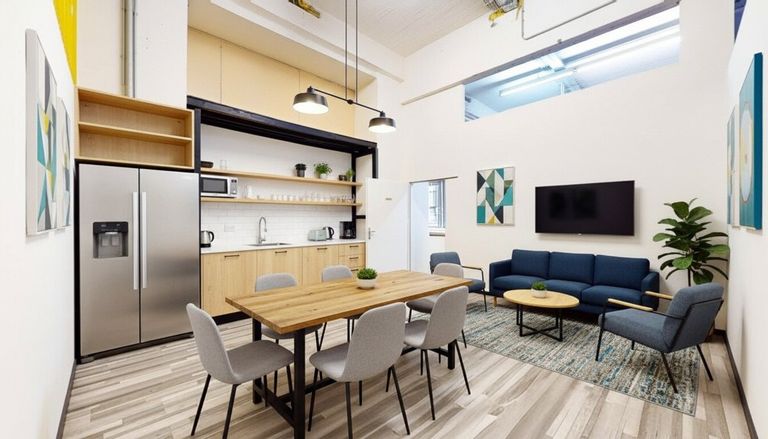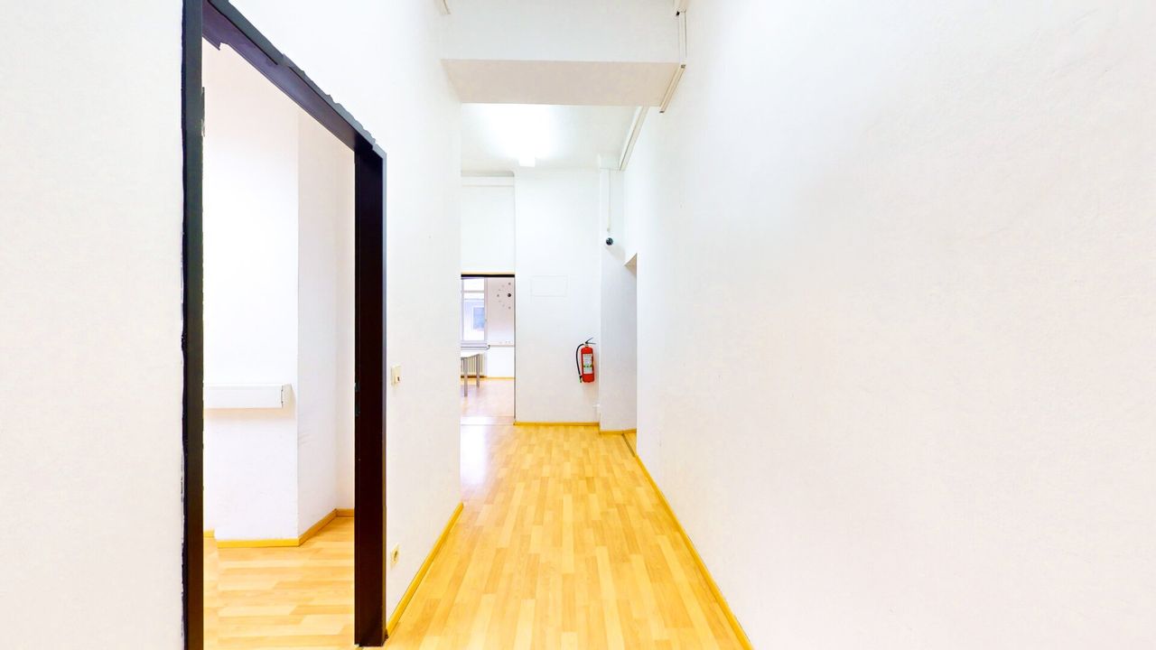 - In der vorderen Halle befindet sich ein abgetrenntes Büro, das zuletzt als Pausenraum genutzt wurde.