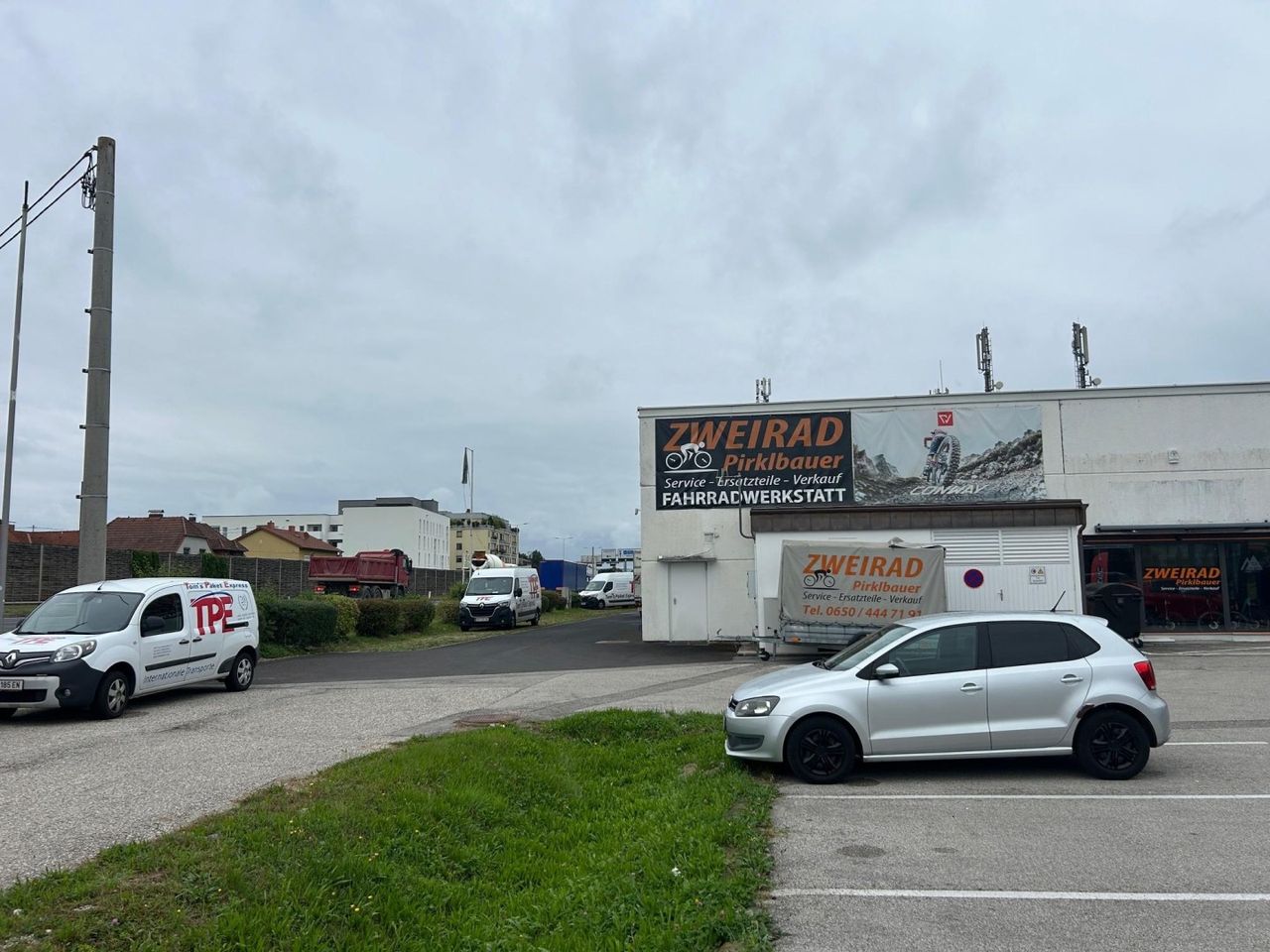 Halle und Büro mit M Widmung für Handel aller Art. Es gibt viele dazugehörige Parkplätze vor dem Geschäft.GESCHÄFTSFLÄCHEWIDMUNG