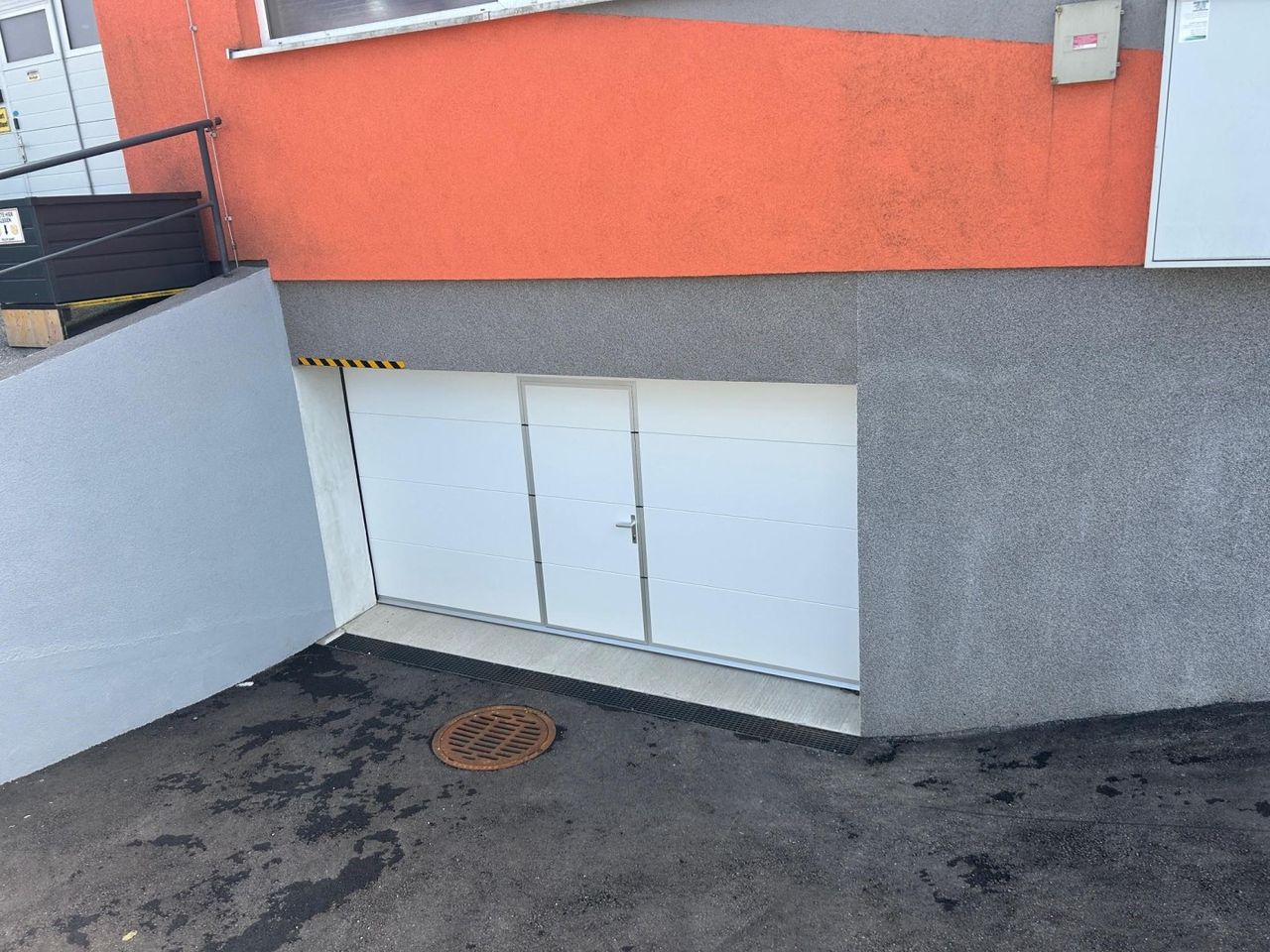 Das Garagentor lässt sich bequem per Fernbedienung öffnen. Die Garage verfügt über eine Durchfahrtshöhe von ca. 2,50 Metern.
