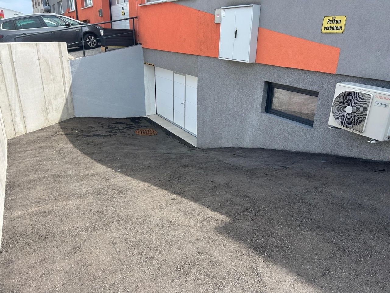 Eine Tiefgarage mit 311 m² Nutzfläche. Es ist hinter und neben dem Nightclub NIGHTFLIGHT