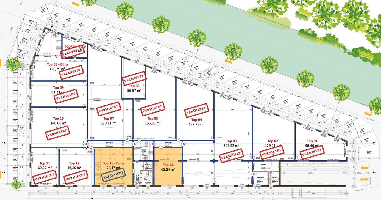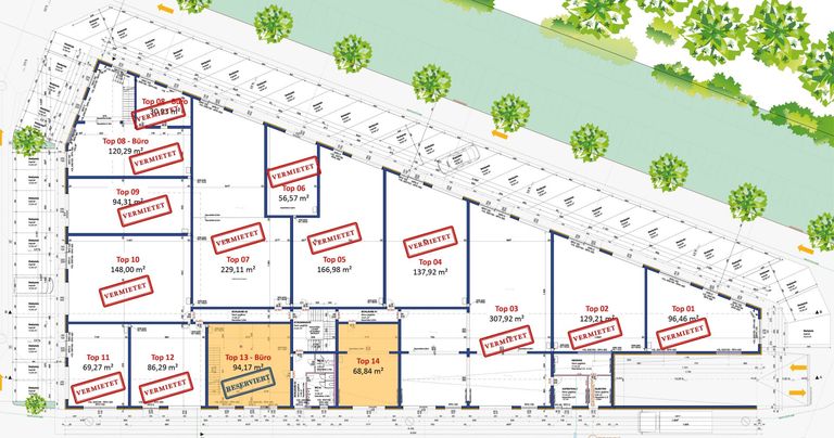 * Wir weisen daraufhin, dass auf Grund der Widmung MB an gewissen Branchen nicht vermietet werden kann. Vgl. § 21 Abs. 2a Oö. ROG 1994