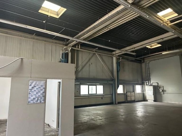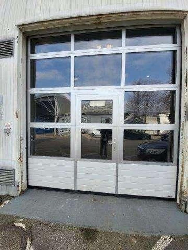 Die Halle verfügt über ein großzügiges Rolltor (ca. 4,25 m Breite × 5 m Höhe) sowie eine separate Eingangstüre.