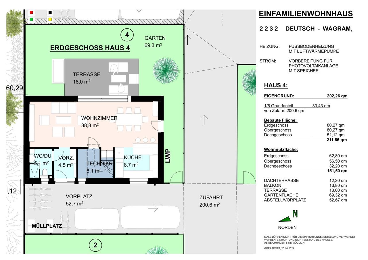 Haus 4: 152m2 Wohnfläche, 69,32m2 Garten, 18m2 Terrasse