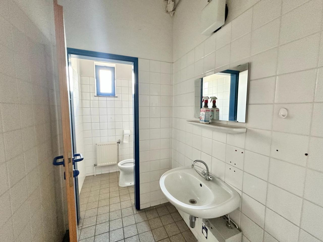 Diese Bereiche umfassen ein Büro (7 m²), einen Aufenthaltsraum mit Küchenzeile (9,9 m²) und zwei getrennte WC.