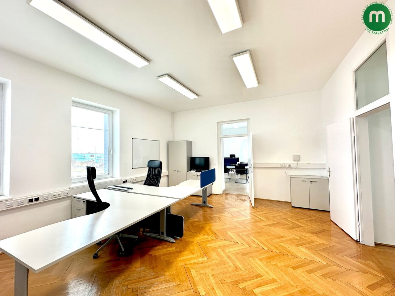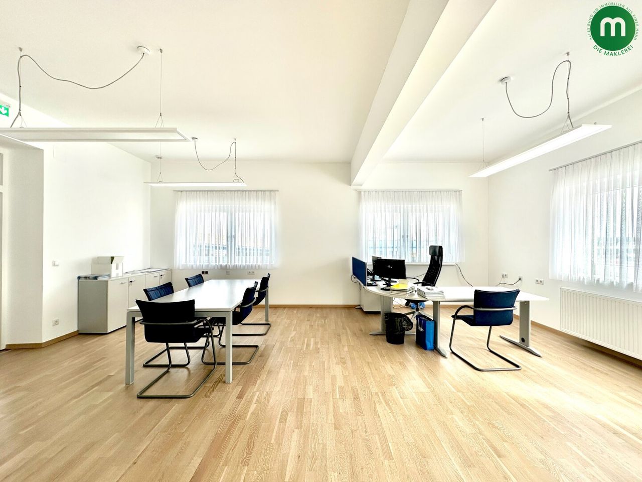 • ein Obergeschoß mit 5 Bürozimmern sowie einer Küche mit Essplatz und Toilette
