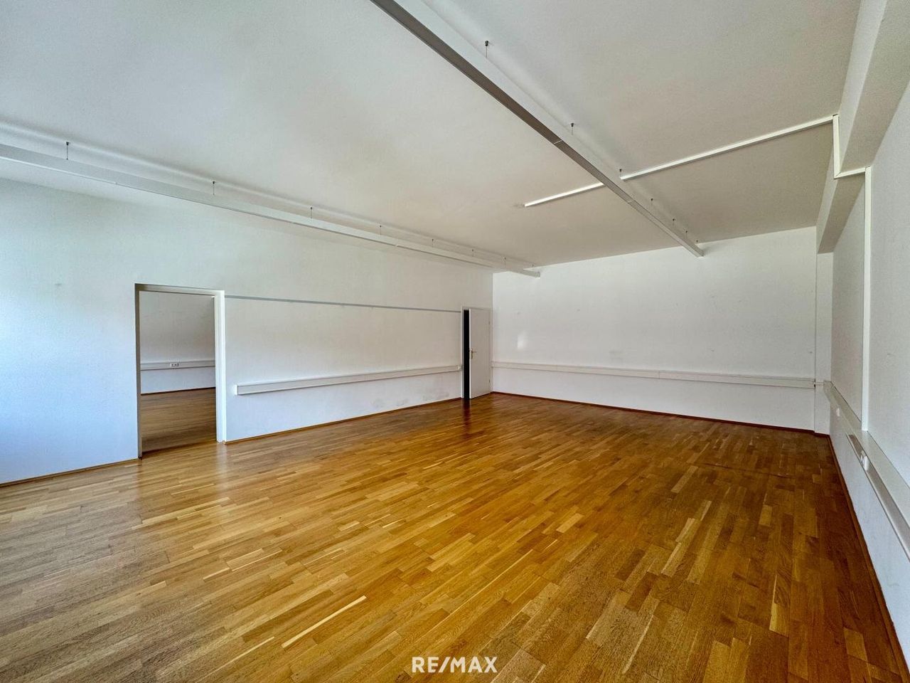 - Die hinteren zwei Räume sind durch eine Tür/Durchgang miteinander verbunden – gut geeignet für kombinierte Arbeitsbereiche oder getrennte Nutzungen