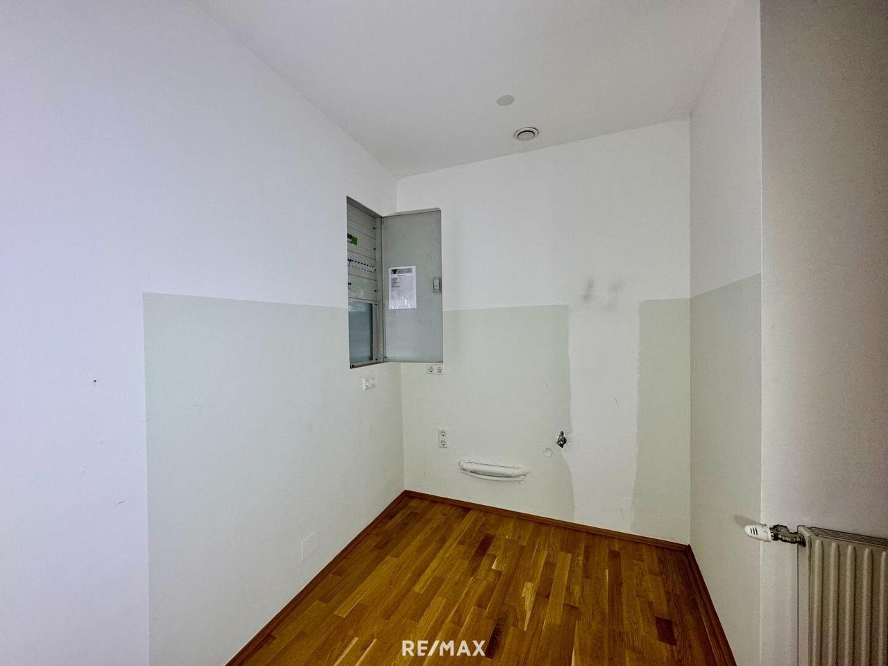 - Im vorderen Raum befinden sich Anschlüsse für eine Küche – ideal für einen Aufenthaltsbereich, Teeküche oder Empfang
