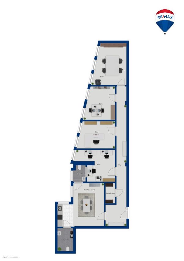 - Drei zusätzliche, separat begehbare Räume – ideal als Einzelbüros, Beratungsräume oder Rückzugszonen