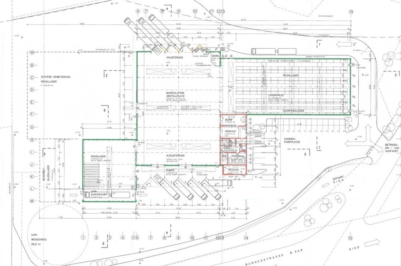 - Manipulationshalle (1.620 m²): Höhe 7 m, inkl. überdachter Verladerampen und ebenerdigem Rolltor