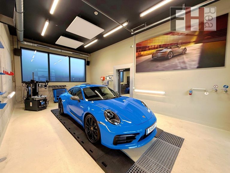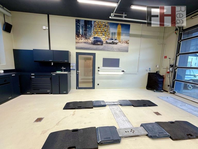 Vermietet wird das komplette Erdgeschoss der Liegenschaft mit einer überdachten Freifläche von rund 290m² und einer weiteren Fläche im Außenbereich von ca. 200m². Die KFZ-Werkstatt selbst bietet 2 KFZ- Boxen mit 43m² und 40m², welche mit einem Durchgang verbunden sind, Diese 2 Boxen sind direkt mit einem ca. 15 m² großen Aufenthaltsraum mit kleiner Küche und einem Waschbereich mit Dusche und Toilette verbunden. Die Grundausstattung der Werkstatt läßt keine Wünsche offen, hervorzuheben sind unter anderem die Niederflurhebebühnen, ein Rollenbremsenprüfstand, ein Kompressor, den Kombiabgastester, das Scheinwerfereinstellgerät, eine Abluftanlage, eine Druckluftanlage, Ölabscheider, Sektionaltore mit Türen, E-Ladestationen und vieles mehr. Weiters steht noch eine Aufbereitungsbox bzw. ein Waschplatz für 2 PKWs zur Verfügung.