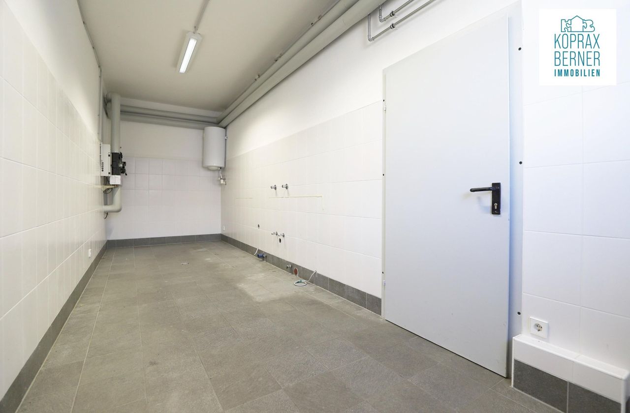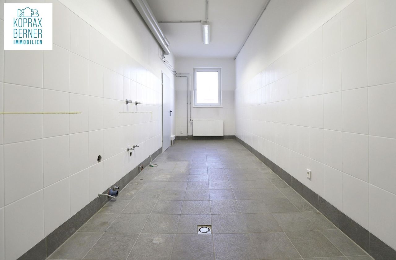 Neben dem großen Hallenraum steht auch noch ein weiterer Arbeitsraum zur Verfügung, der auch mit einem Wasseranschluss ausgestattet ist.