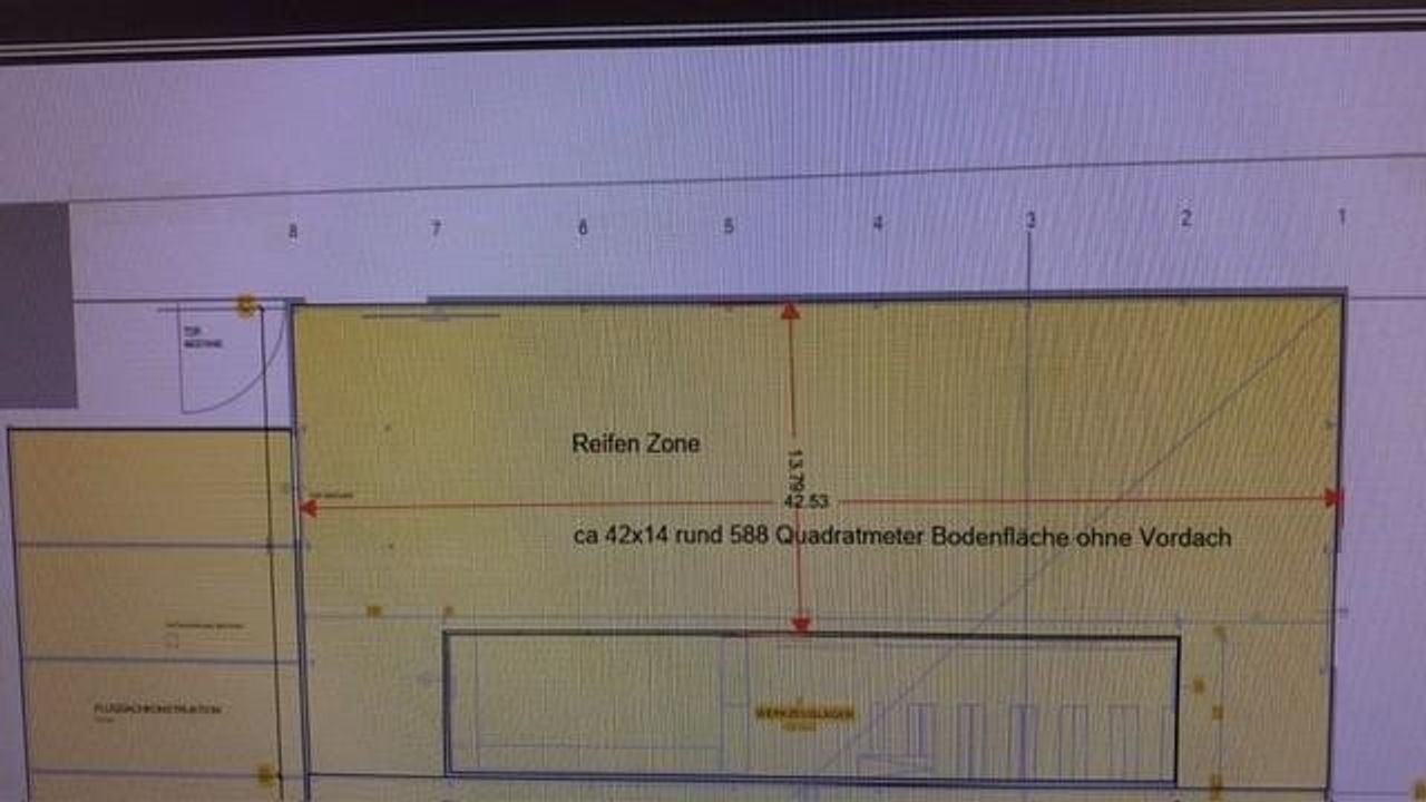 588 m2 Halle unbeheizt aber mit Sprinkeranlage und Brandschutzvorrichtung.6 Meter Höhe.Die Halle hat einen Kran. 5 Tonnen.