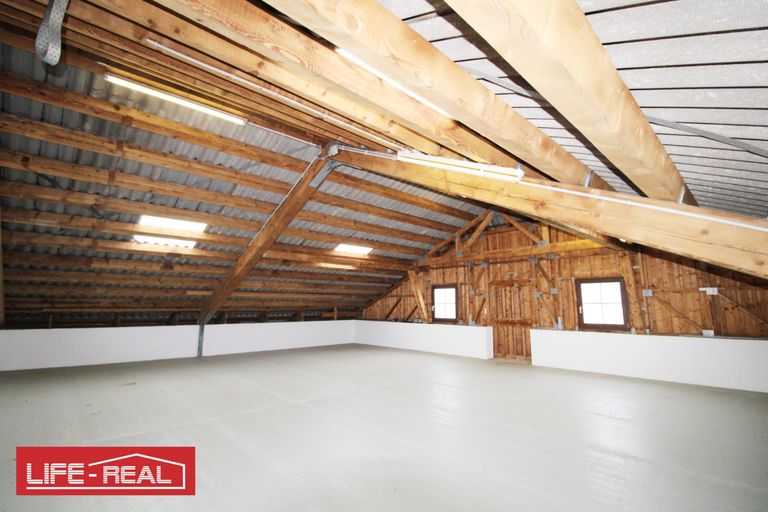 Im ersten Obergeschoss steht eine zusätzliche Fläche von etwa 86 m² zur Verfügung, die wahlweise als weiterer Lagerraum oder potenzielle Bürofläche genutzt werden kann. Der Raum befindet sich noch im unausgebauten Zustand und müsste hinsichtlich Dämmung und Innenausbau fertiggestellt werden, sodass der zukünftige Nutzer hier eigene Vorstellungen verwirklichen kann.
